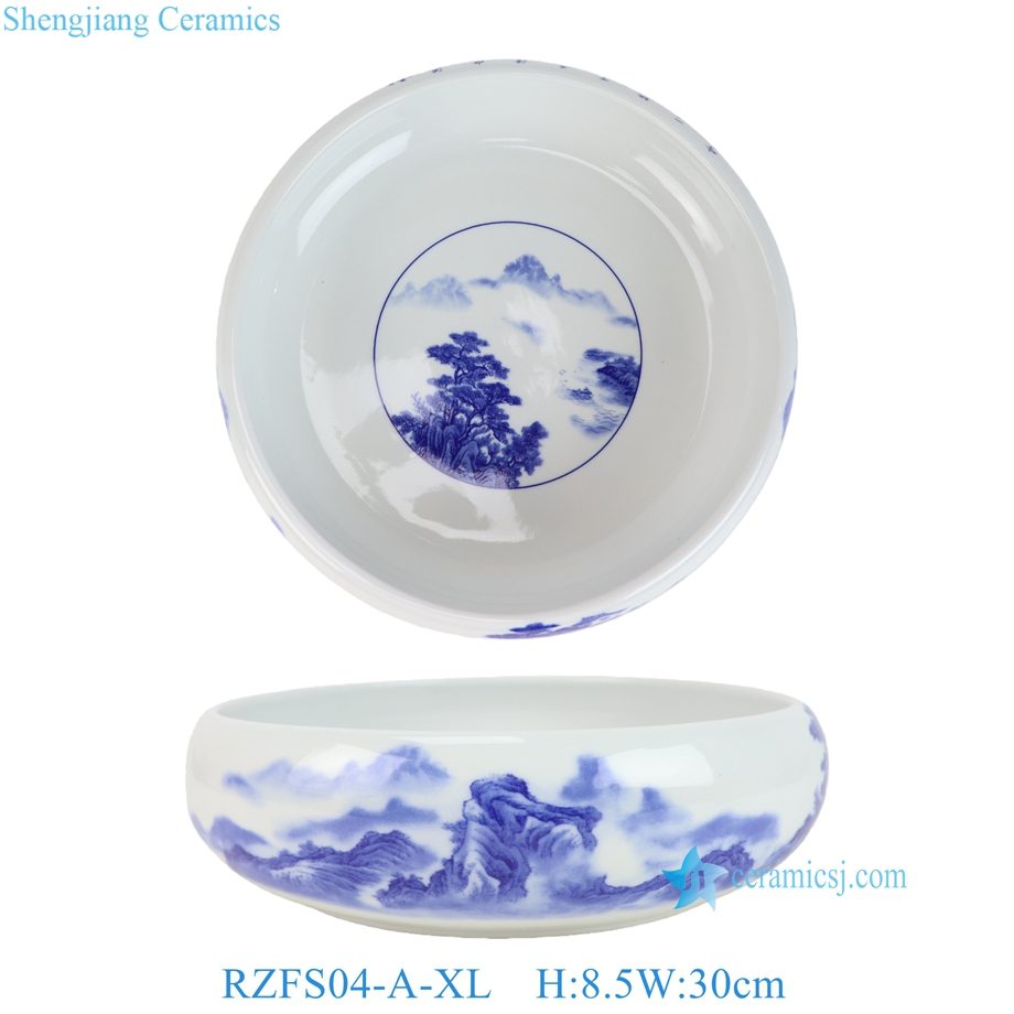 RZFS04-A-XL-L-M-S Chinese Blue and White Landscape Pattern Ceramic Flower Bowl Pot Fish Tank