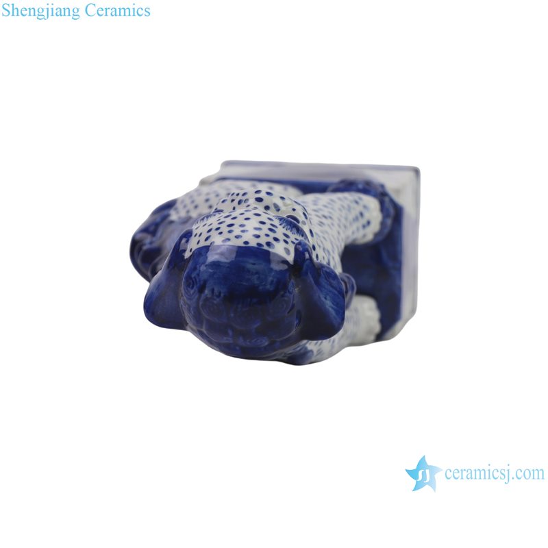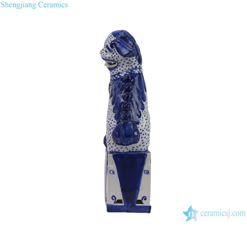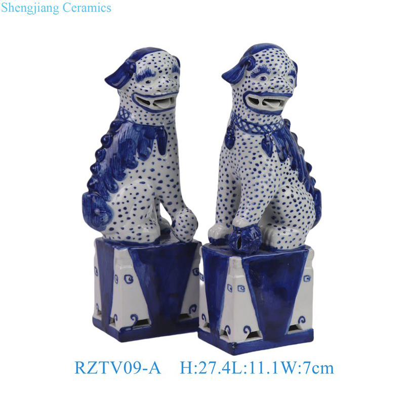 RZTV09-A Hand Painted Blue and White Tabletop Ceramic Foo Dog Sculpture