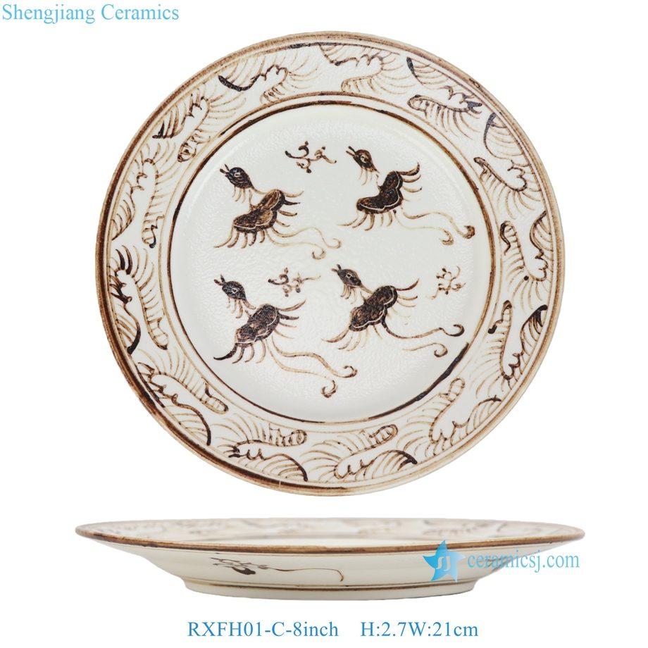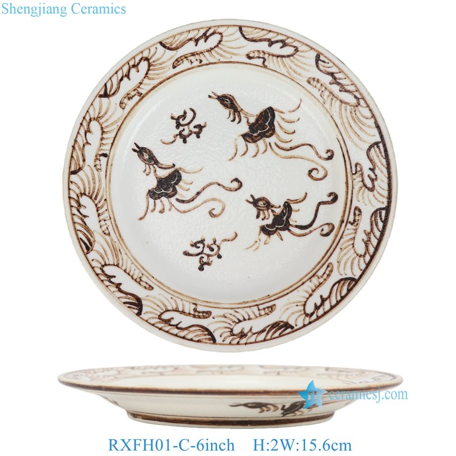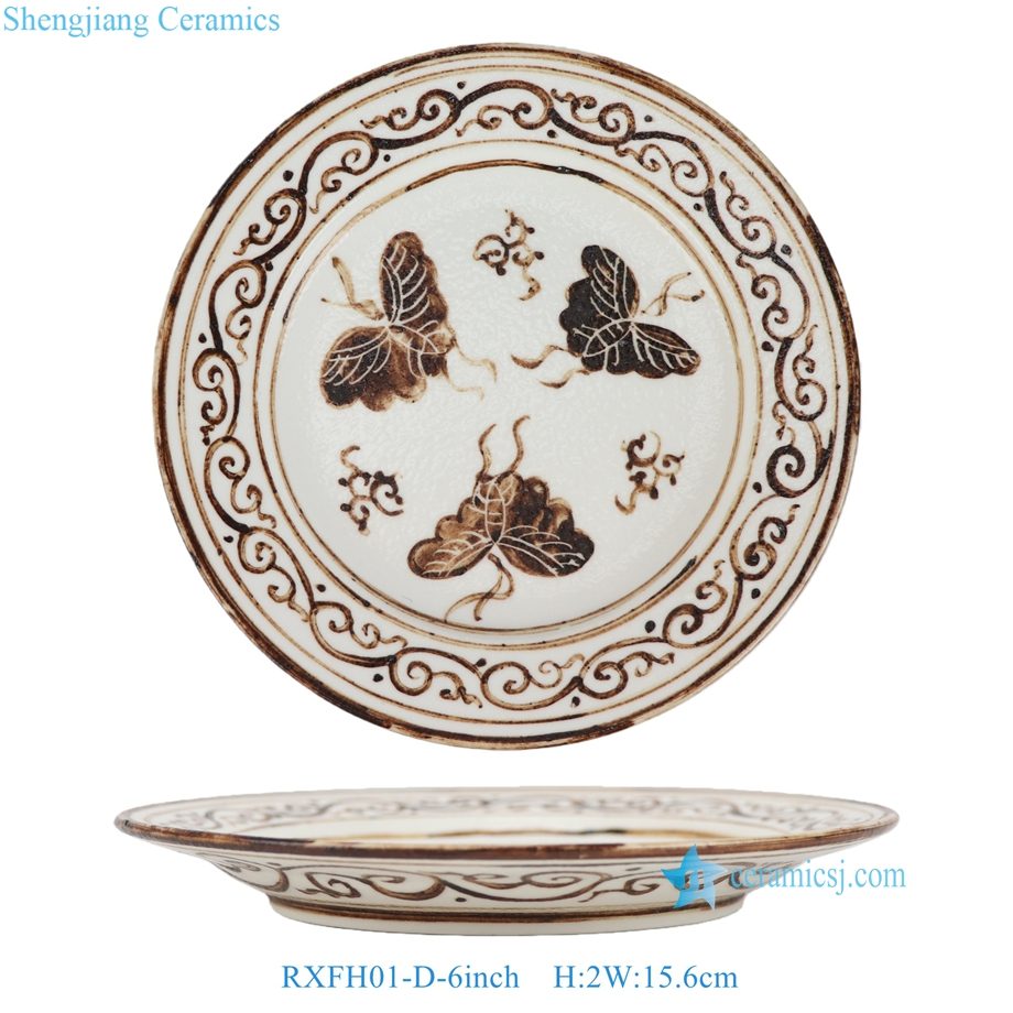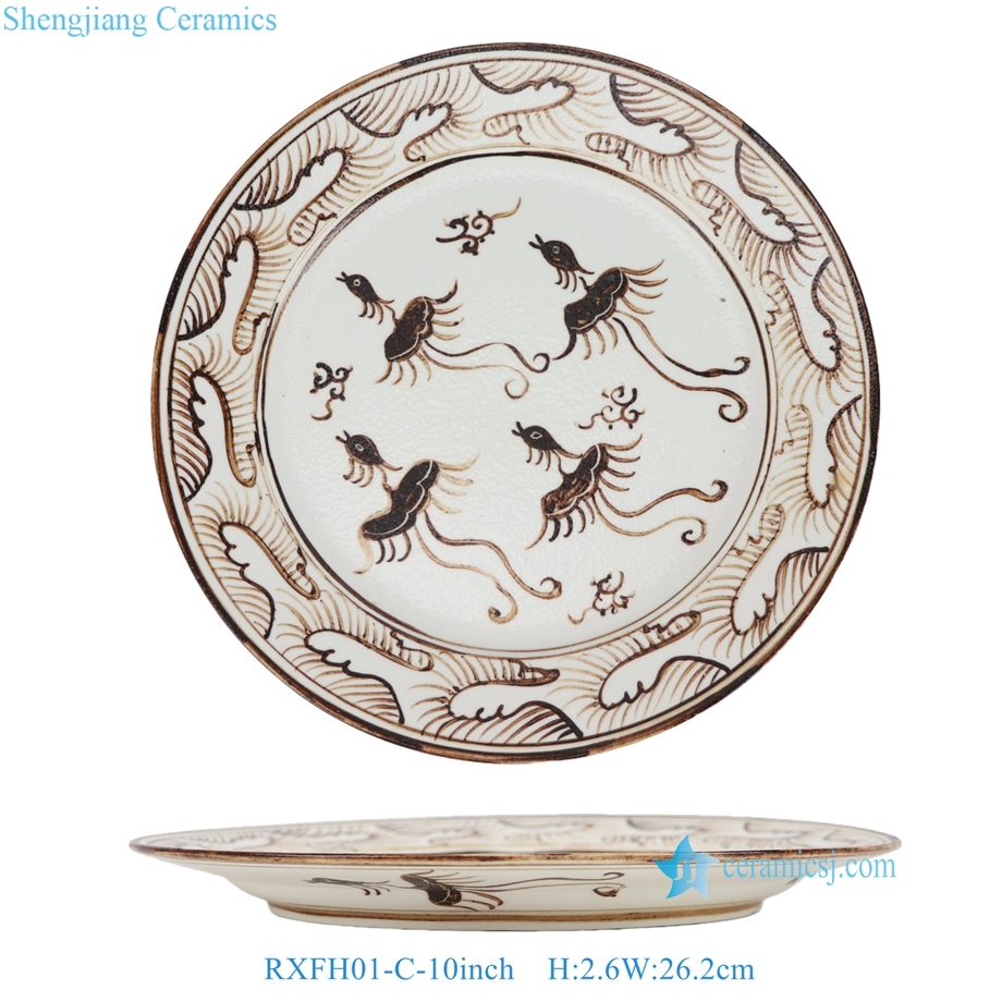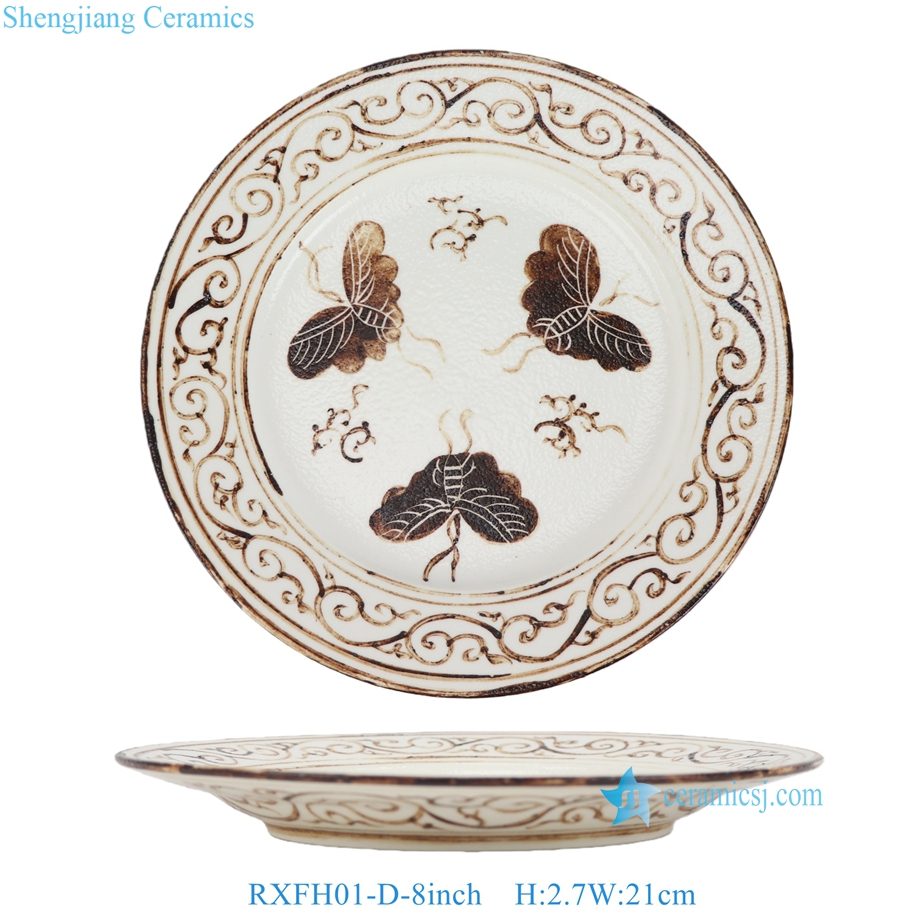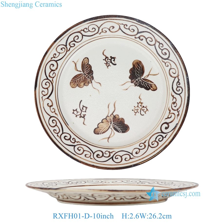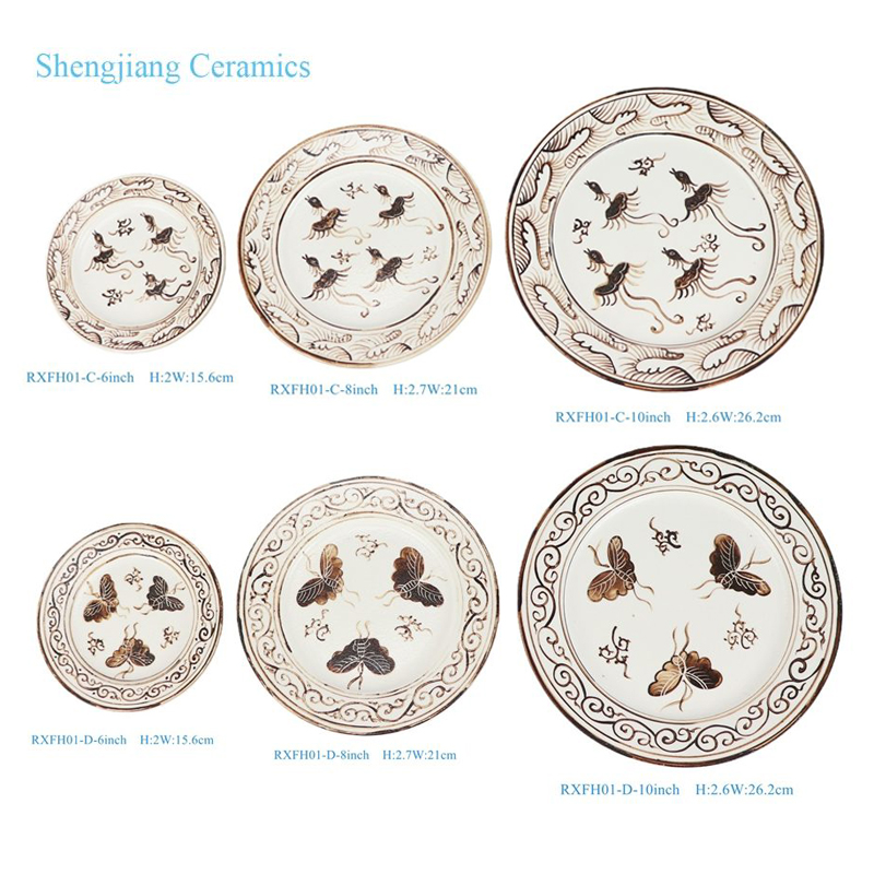 RXFH01-C-D 6/8/10inch Brown and White Phoenix Butterfly Pattern Ceramic Plate Dinnerwares Dish Charger Plate sets