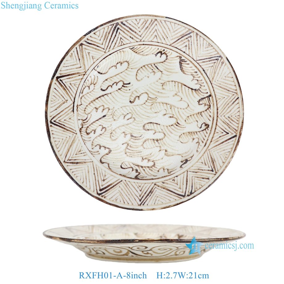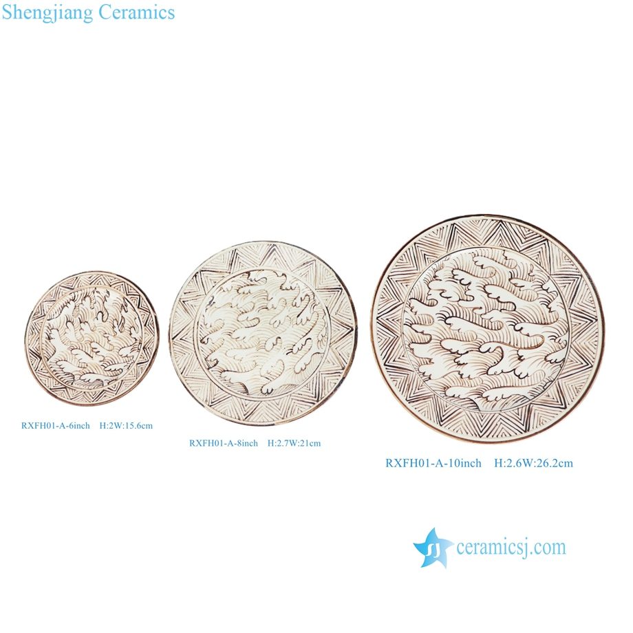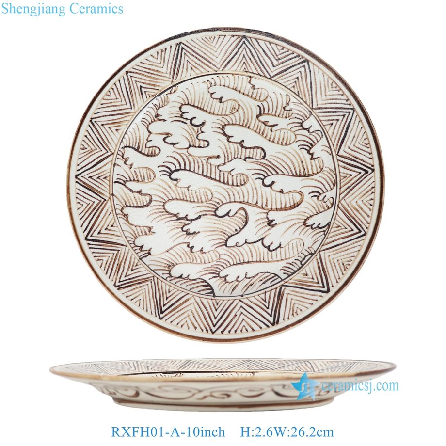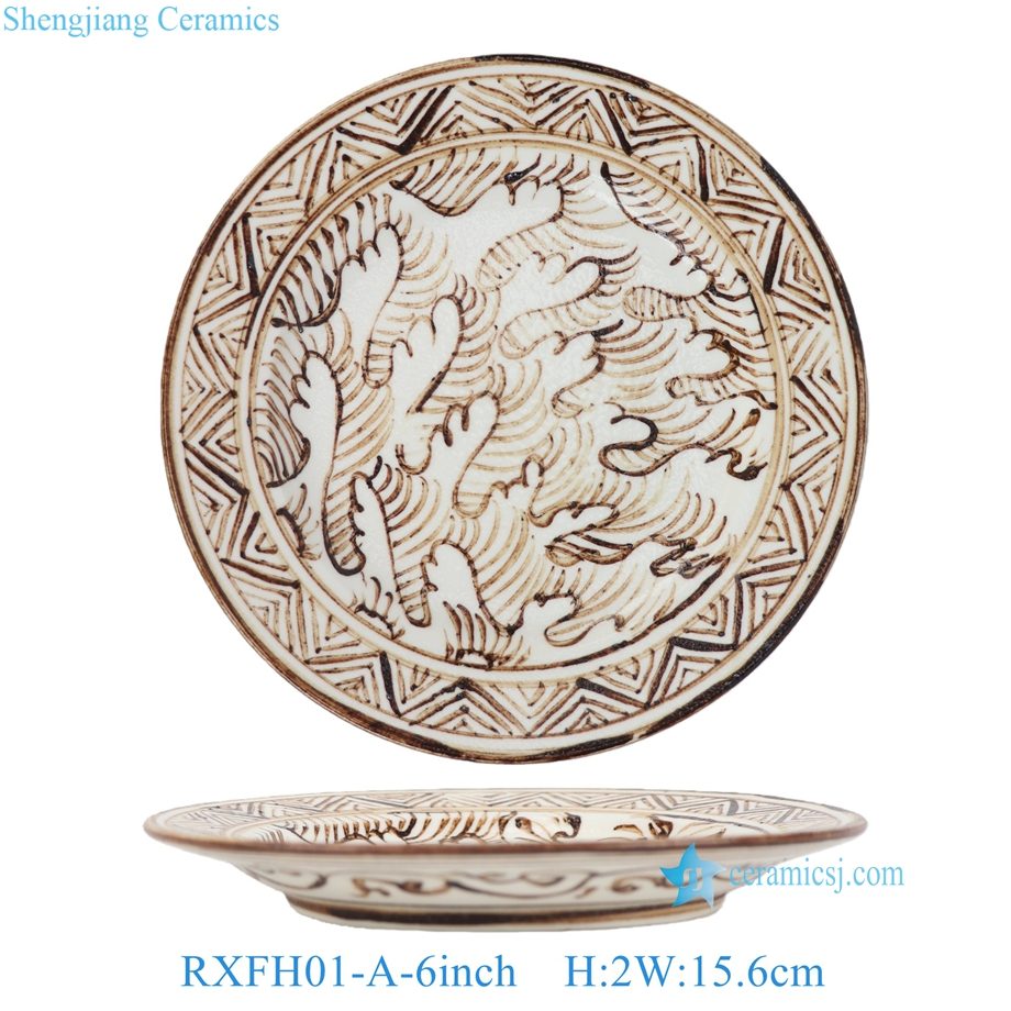 RXFH01-I-A 6inch-8inch-10inch Brick Red Brown and White Mountain Ridge Dragon Pattern Ceramic Dinnerware Desert Trinket Dish Plate