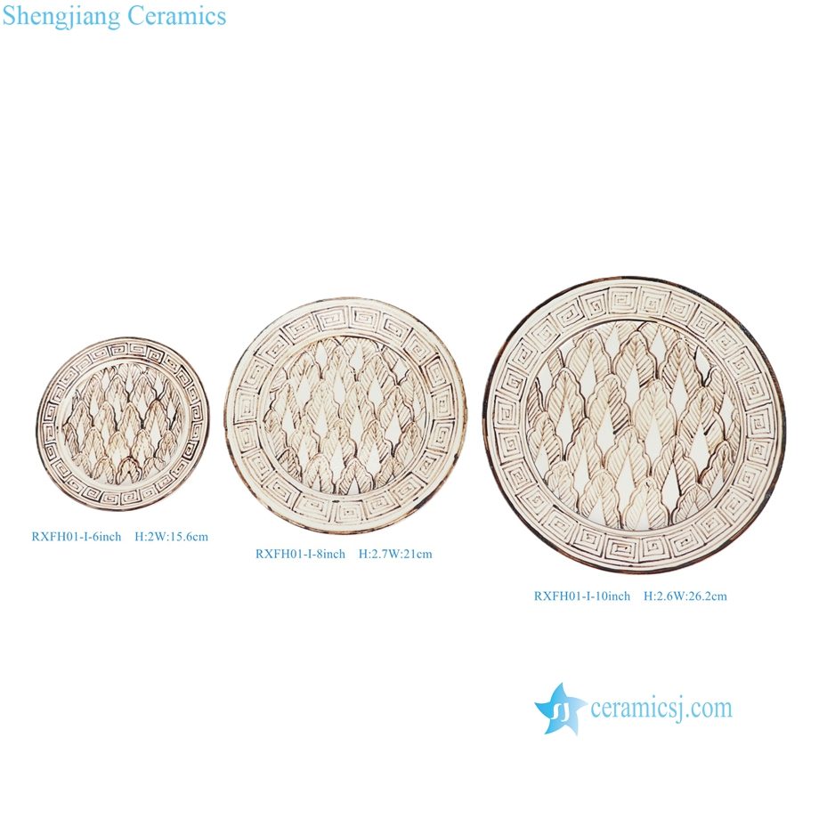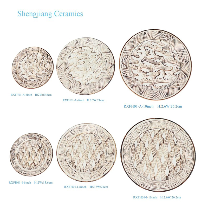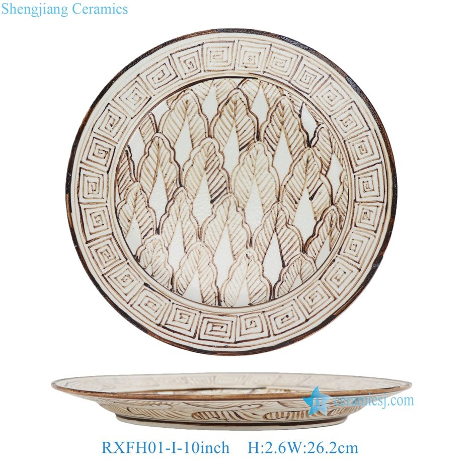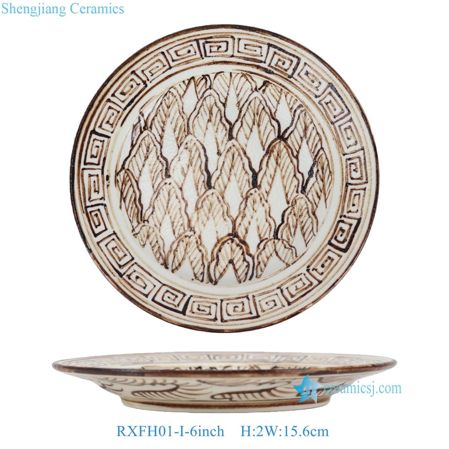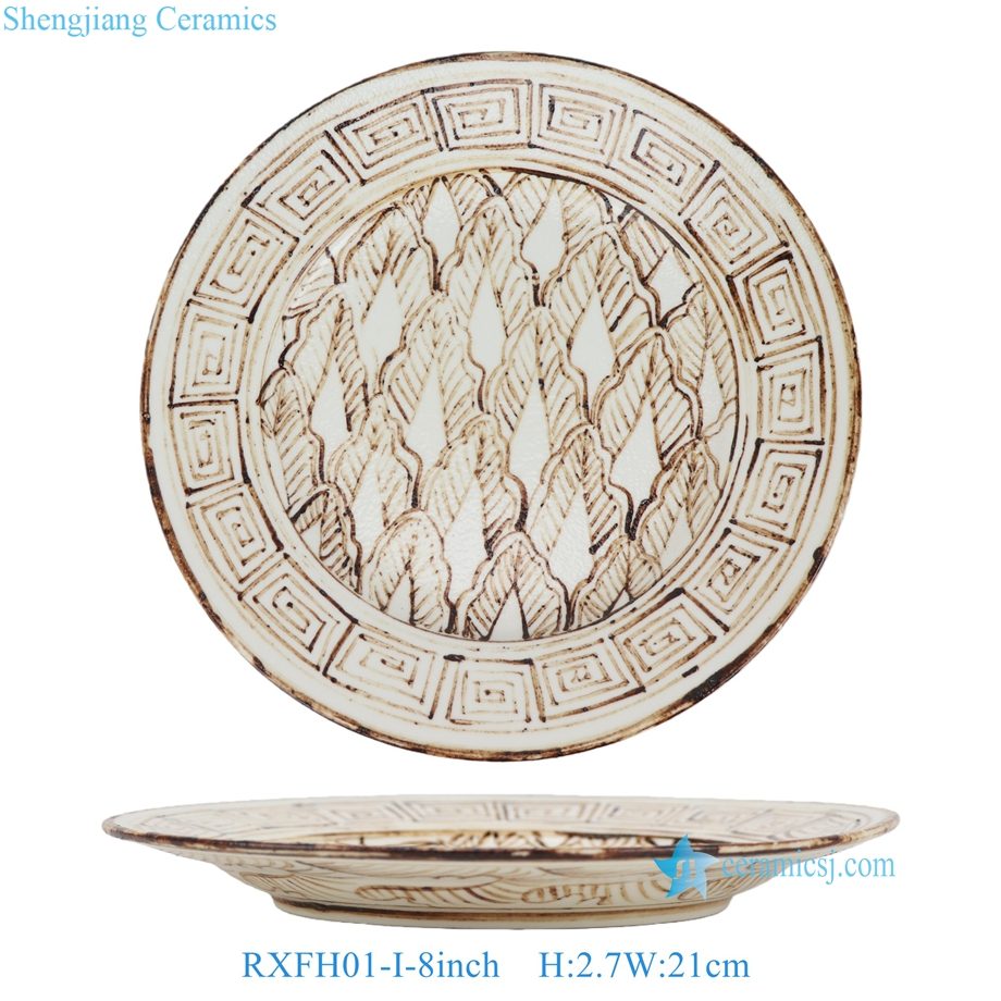 RXFH01-I-A 6inch-8inch-10inch Brick Red Brown and White Mountain Ridge Dragon Pattern Ceramic Dinnerware Desert Trinket Dish Plate