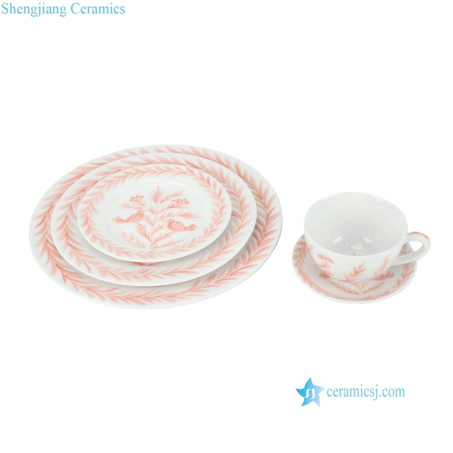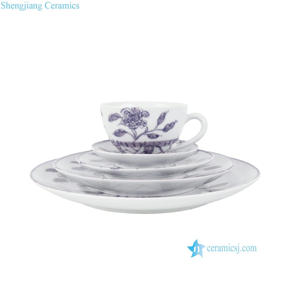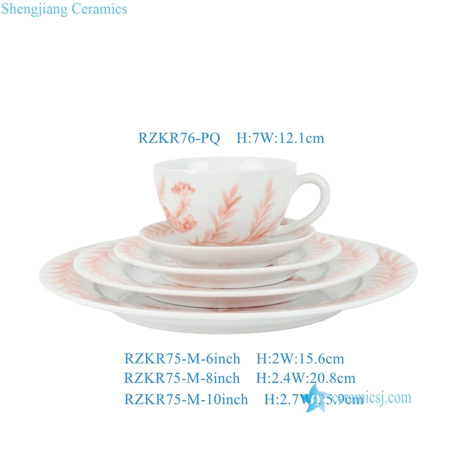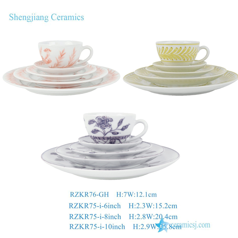 RZKR75-I-M-V 6/8/10inch Jingdezhen Handpainted Blue pink Purple Color Leaf Flower Pattern Ceramic Coffee Cup Dinnerwares Plate Dish