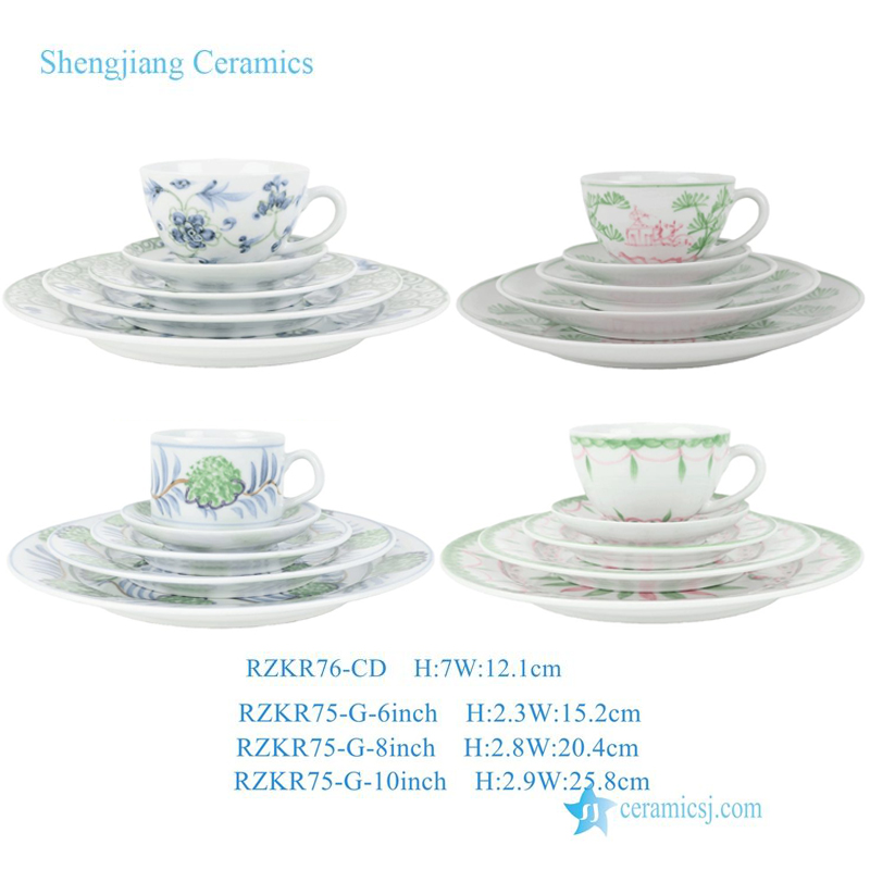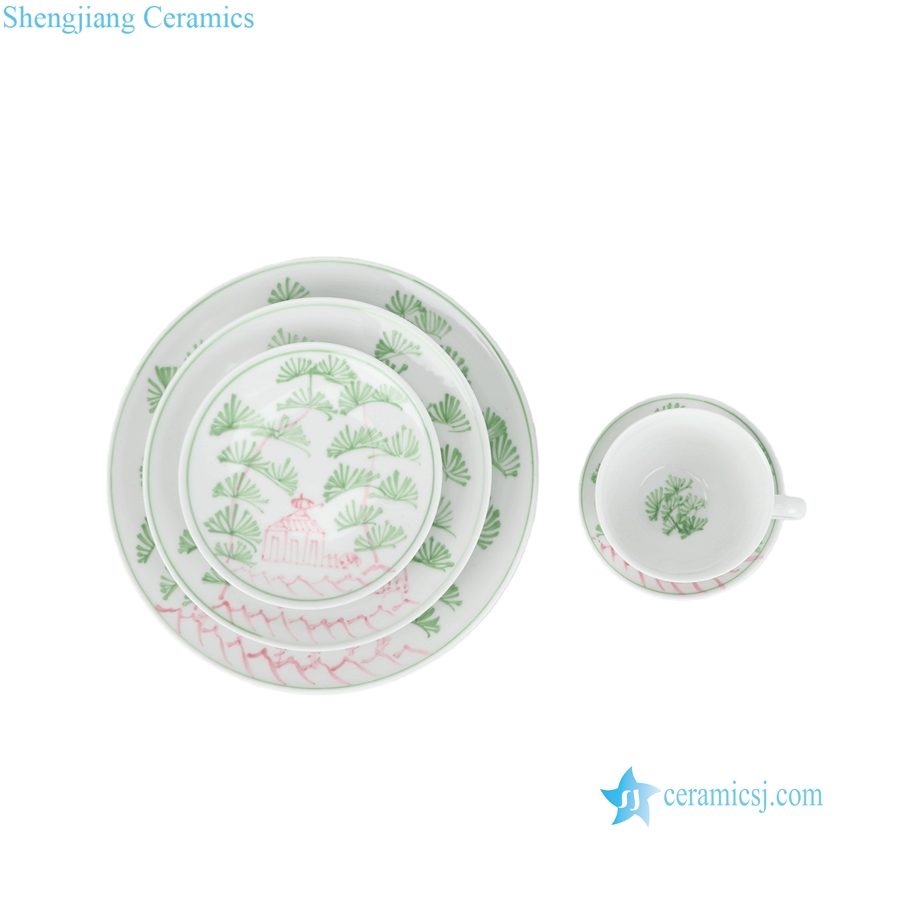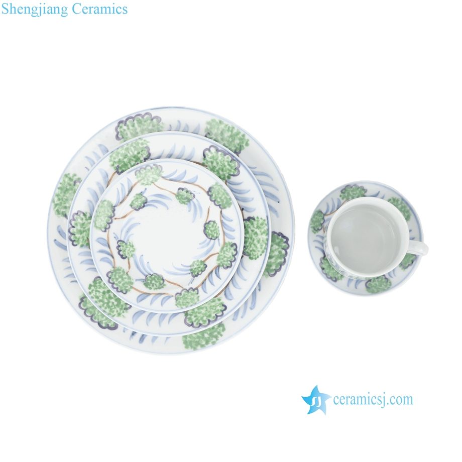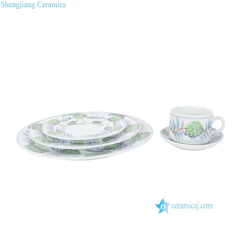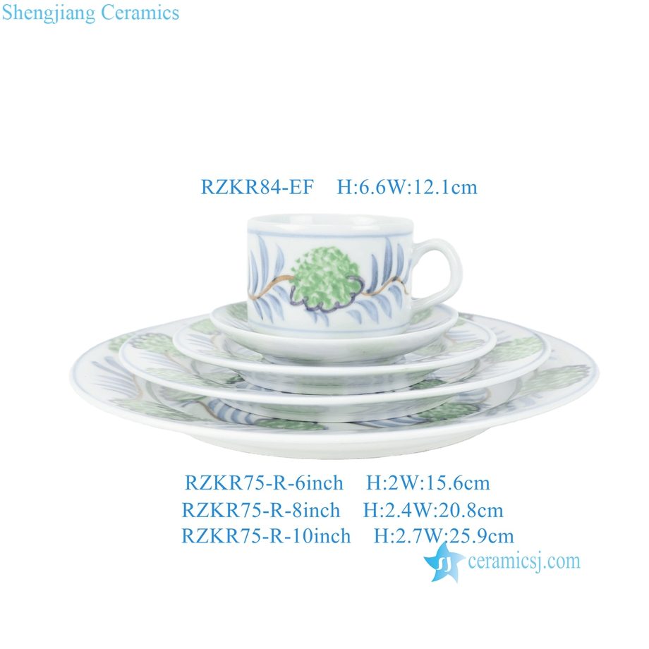 RZKR75-J-G-O-R 6/8/10inch Jingdezhen Handpainted Green and White Pine Tree Twisted Flower Pattern Ceramic Plates Dish Coffee Cups