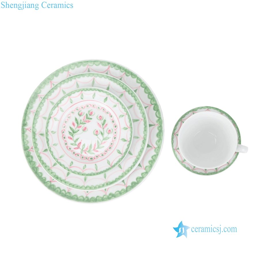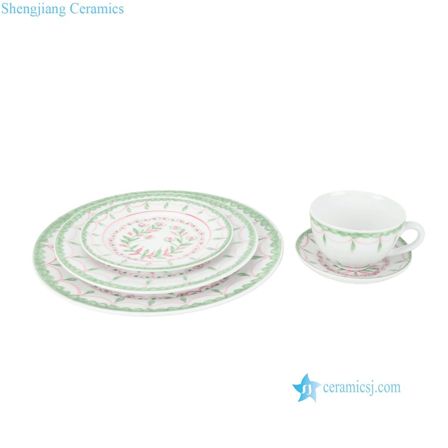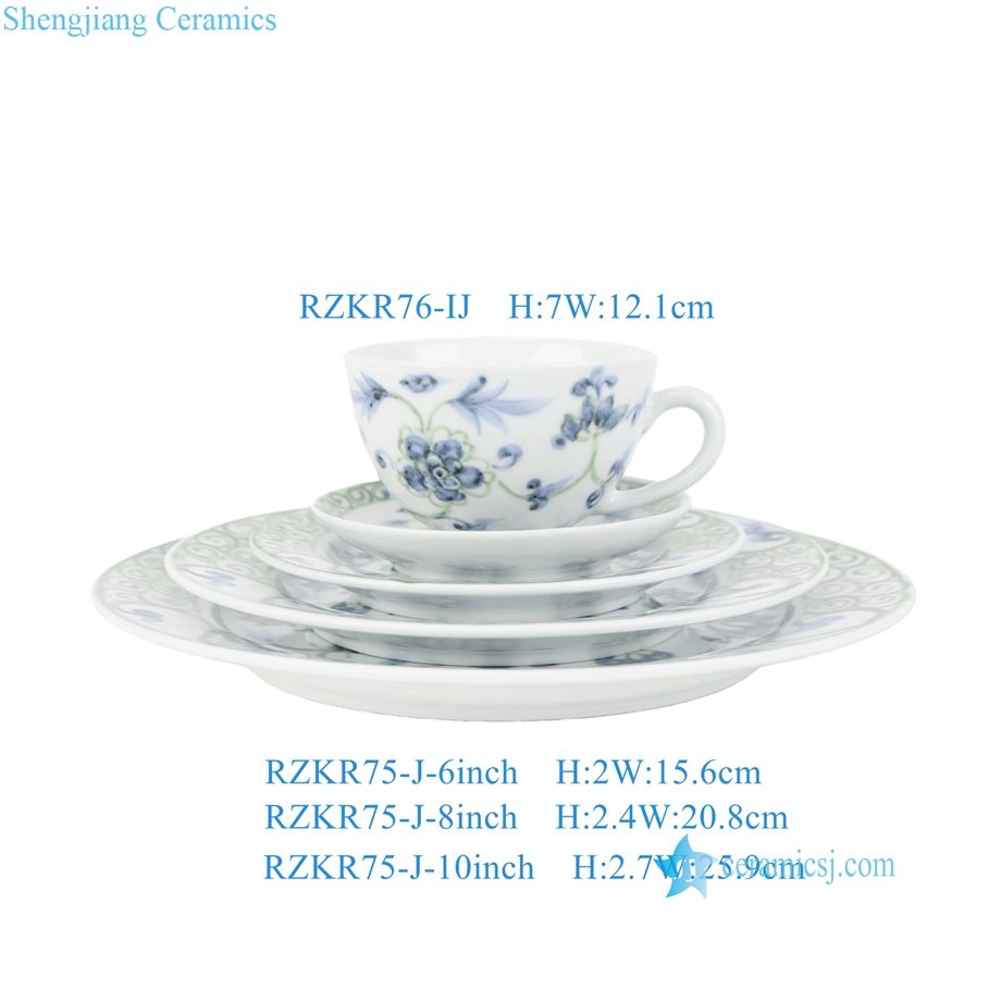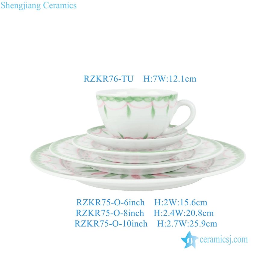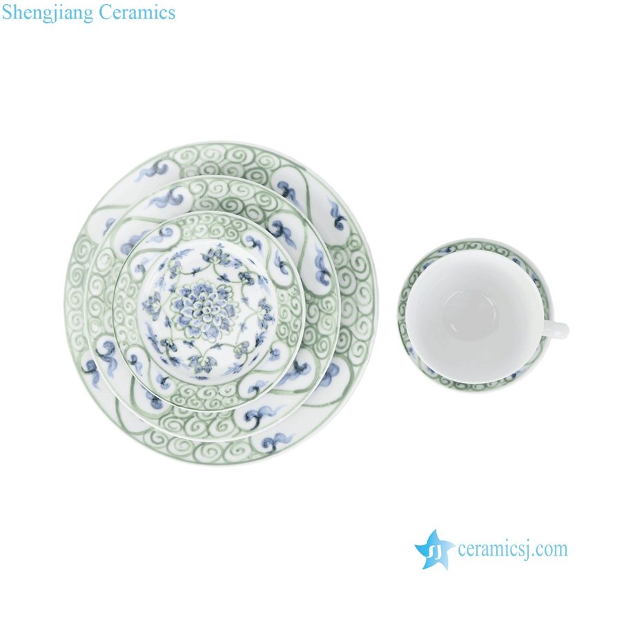 RZKR75-J-G-O-R 6/8/10inch Jingdezhen Handpainted Green and White Pine Tree Twisted Flower Pattern Ceramic Plates Dish Coffee Cups