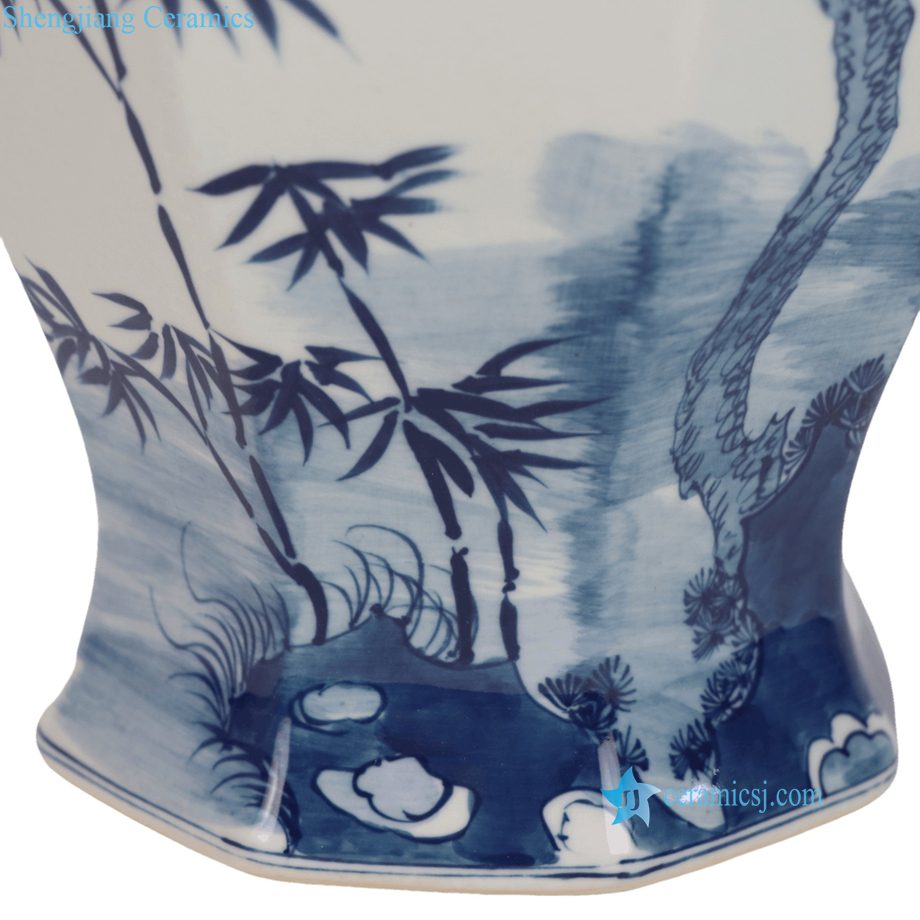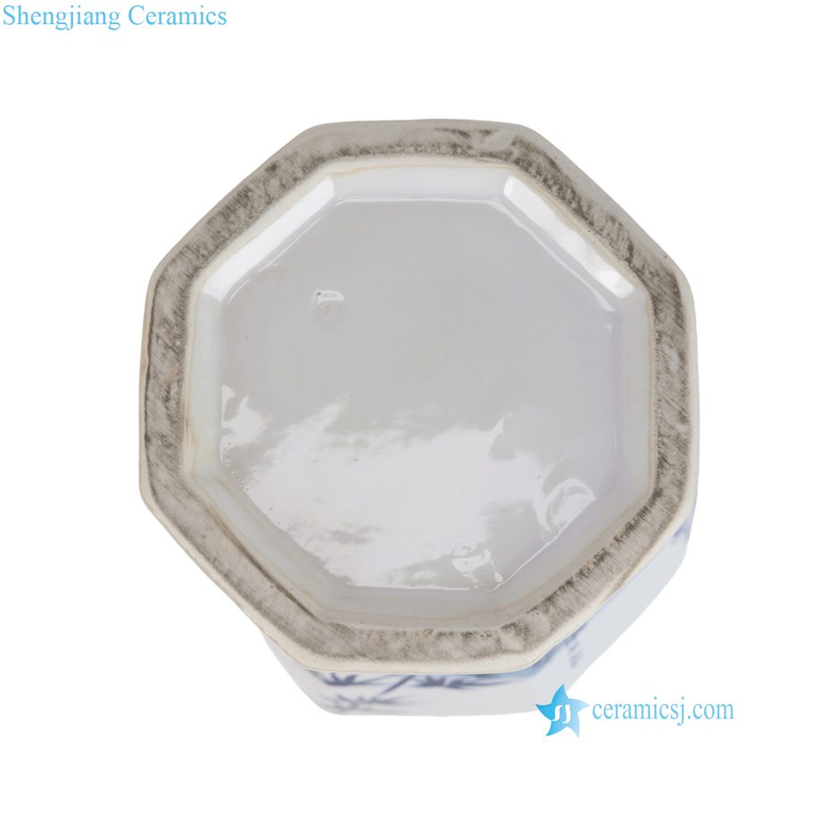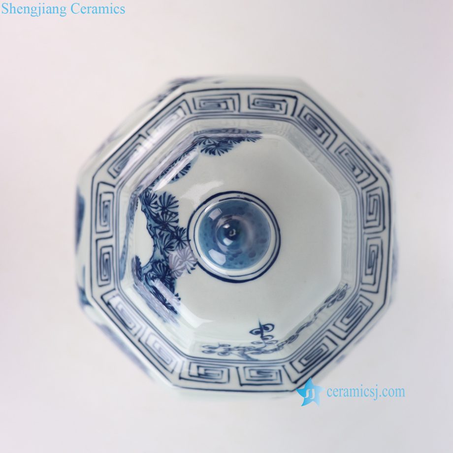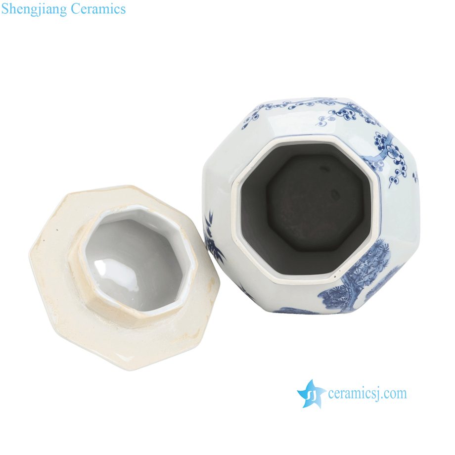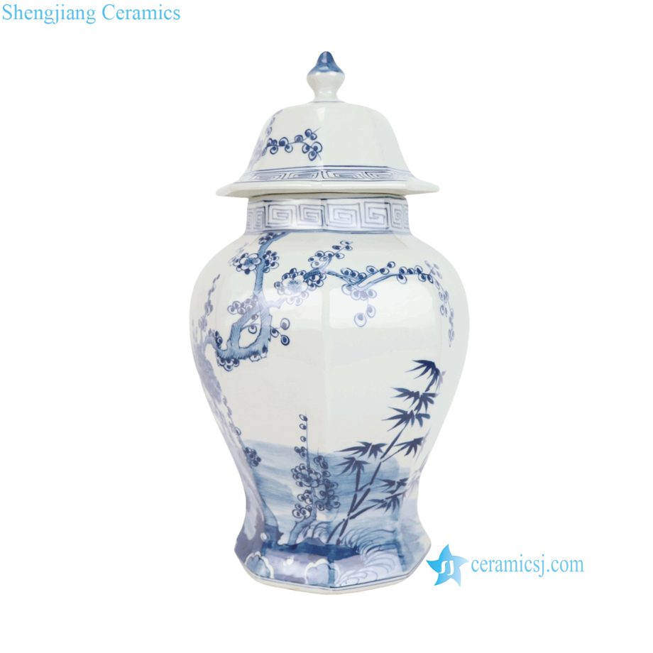 RYKB204-A Decal Pine Baboo Plum Pattern Octangon Ceramic Temple Jar for Home Decor