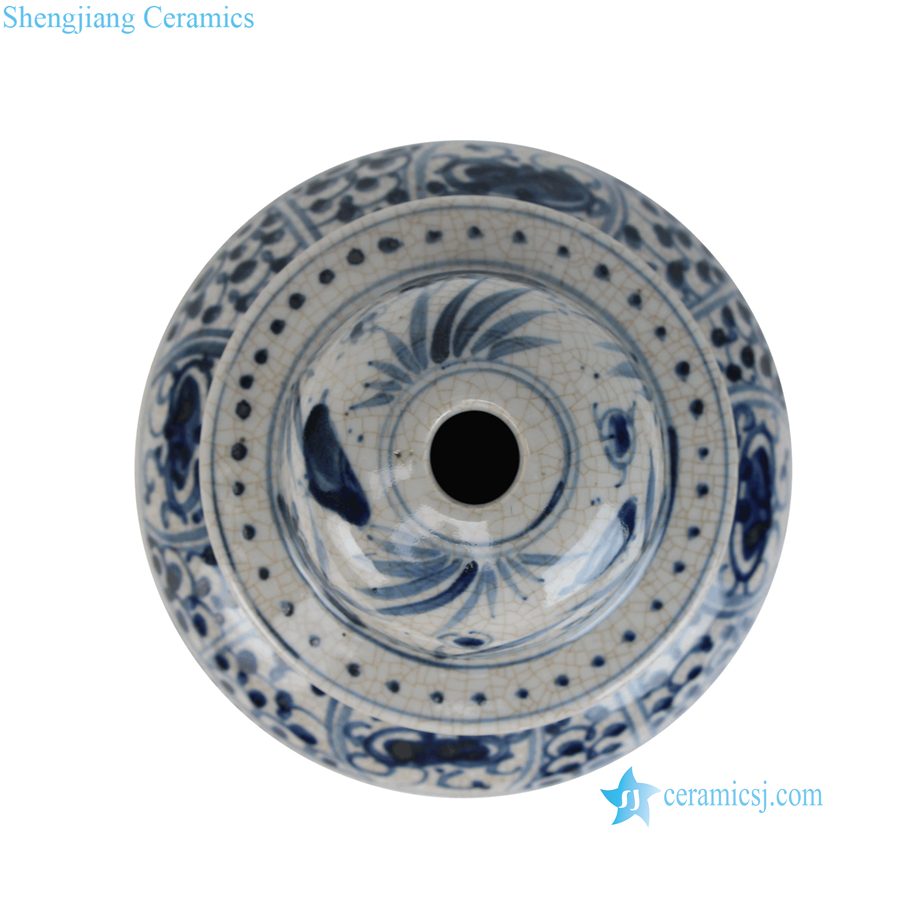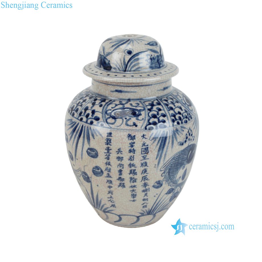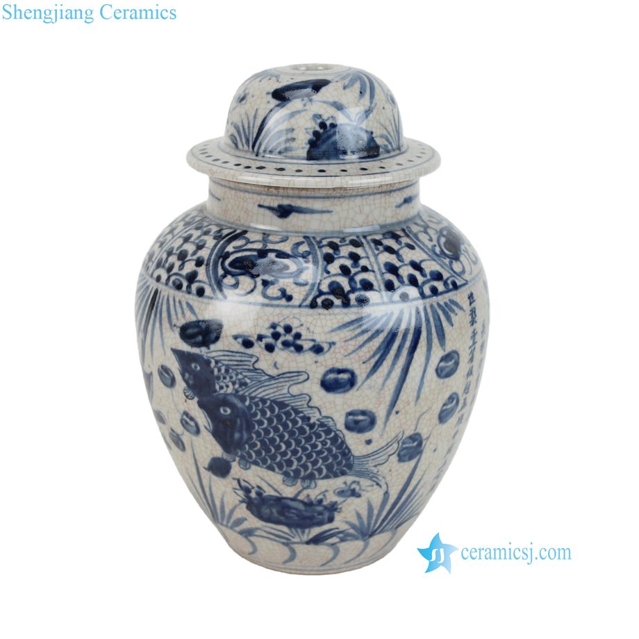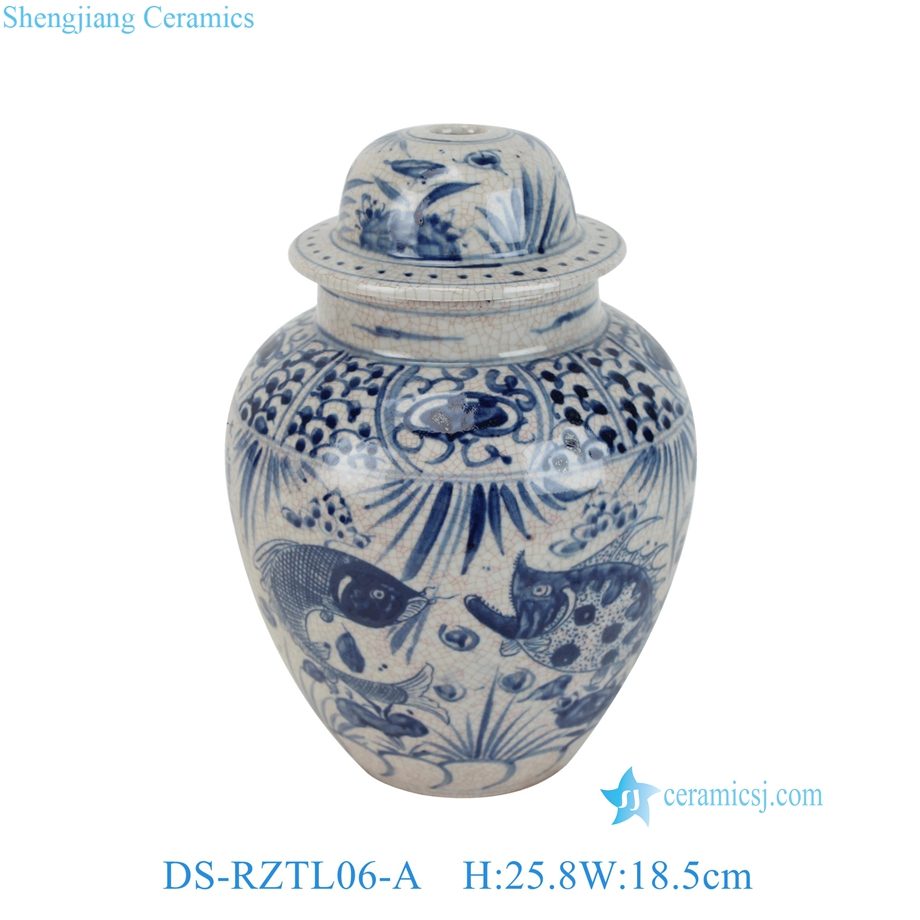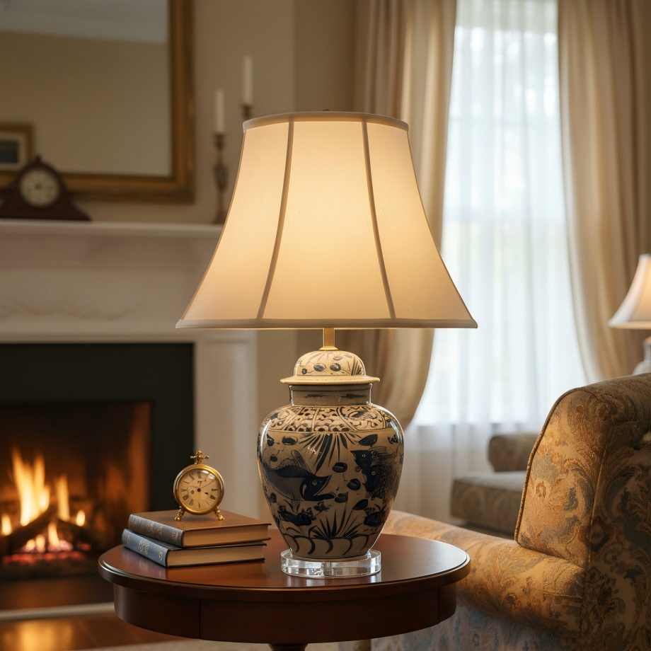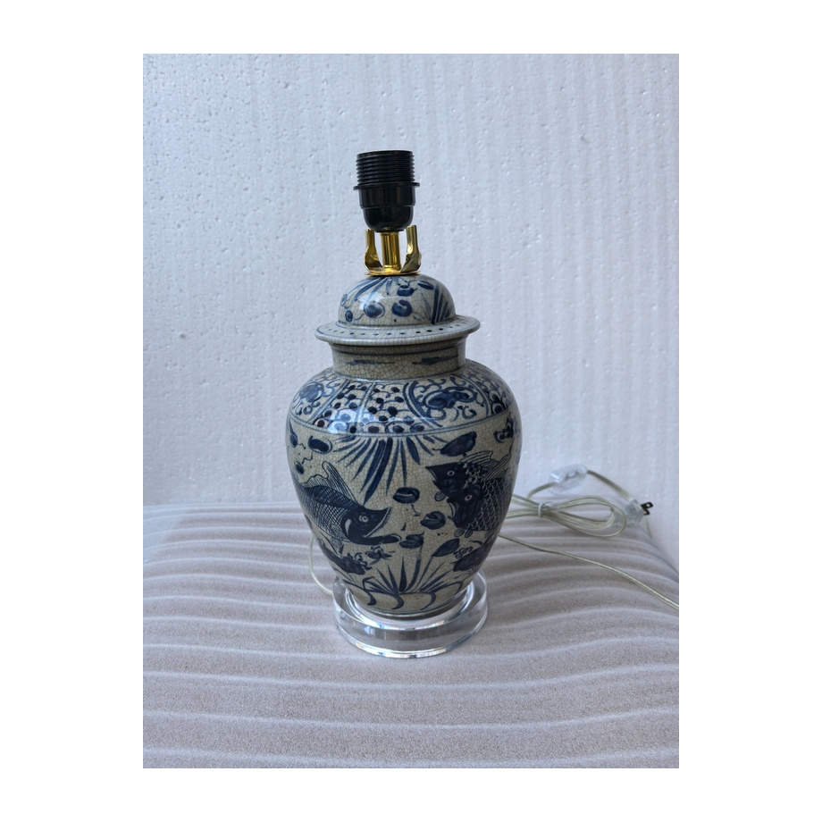 DS-RZTL06-A Hand Painted Blue and White Ceramic Table Lamp Featuring Fish and Algae Motif