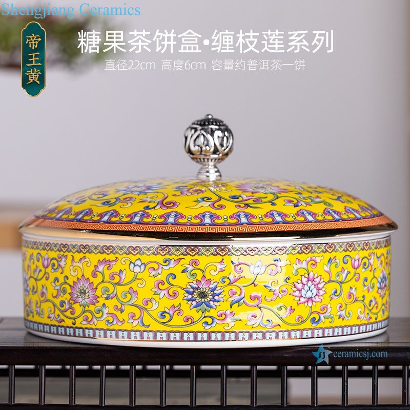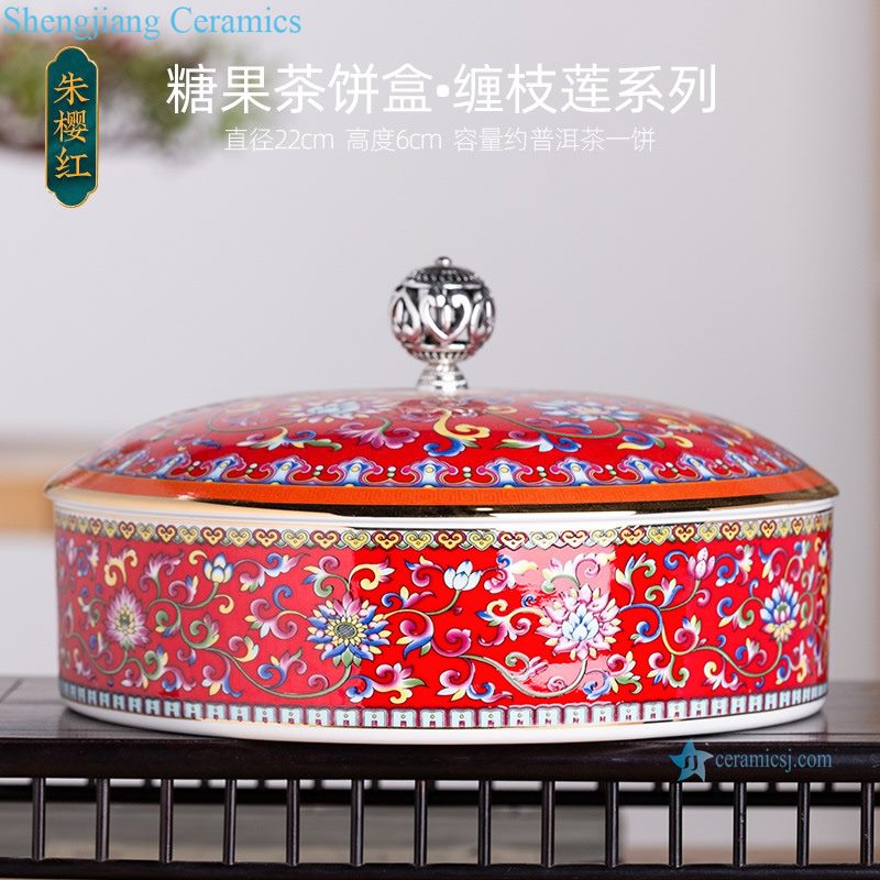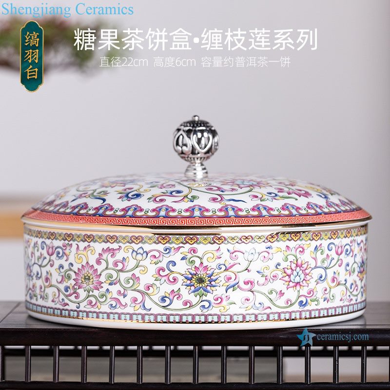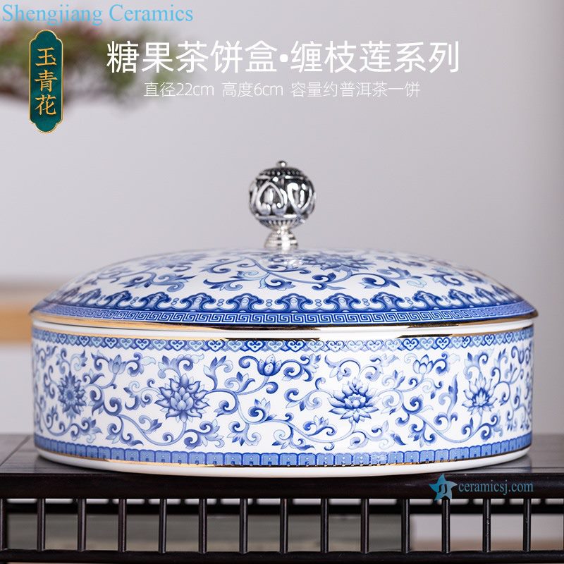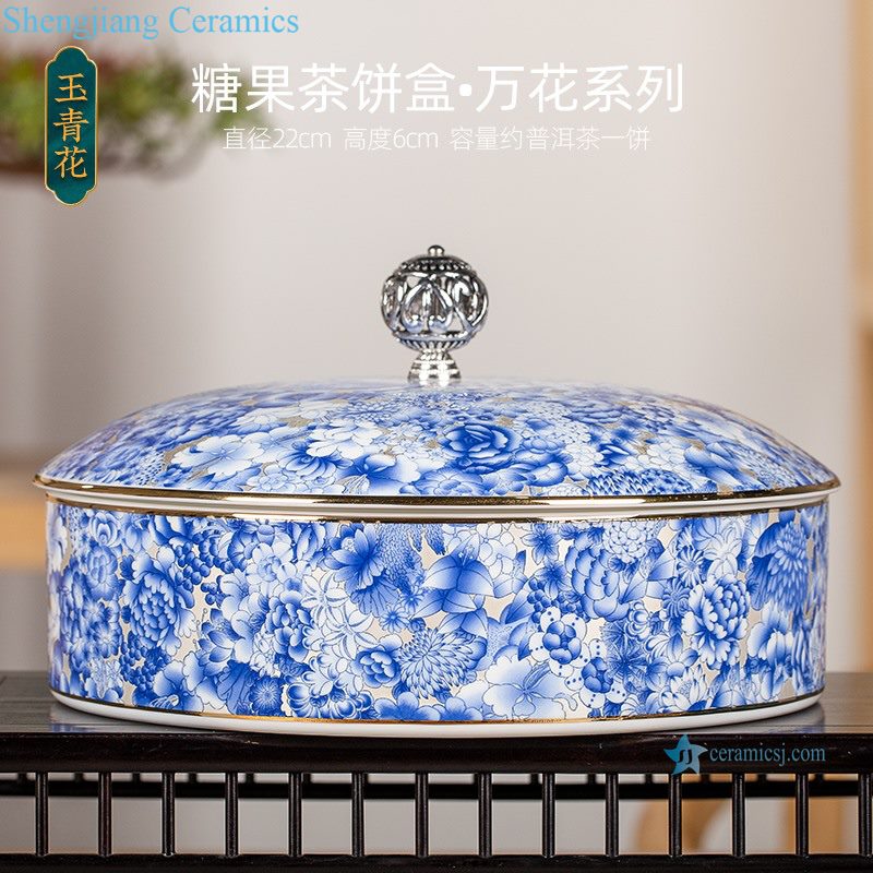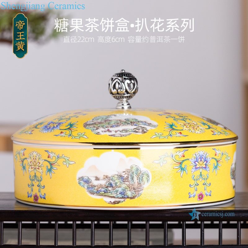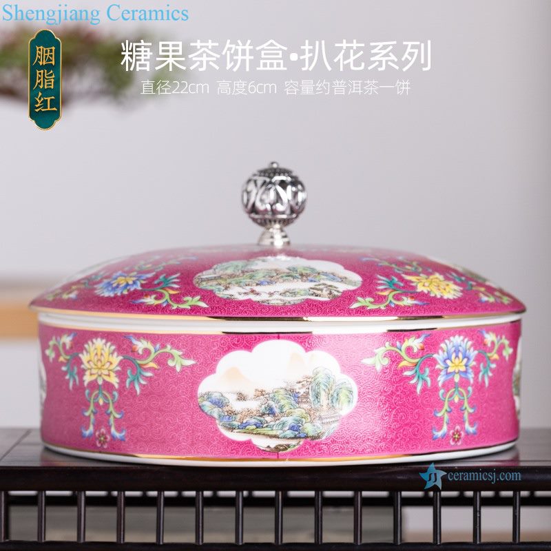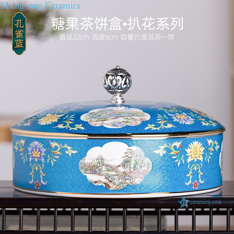 RXDC09-ABCDEFGHI Series Turquoise Blue Ground Famille Rose Reserved Panel Landscape Candy & Tea Cake Lidded Jar Tea Ware