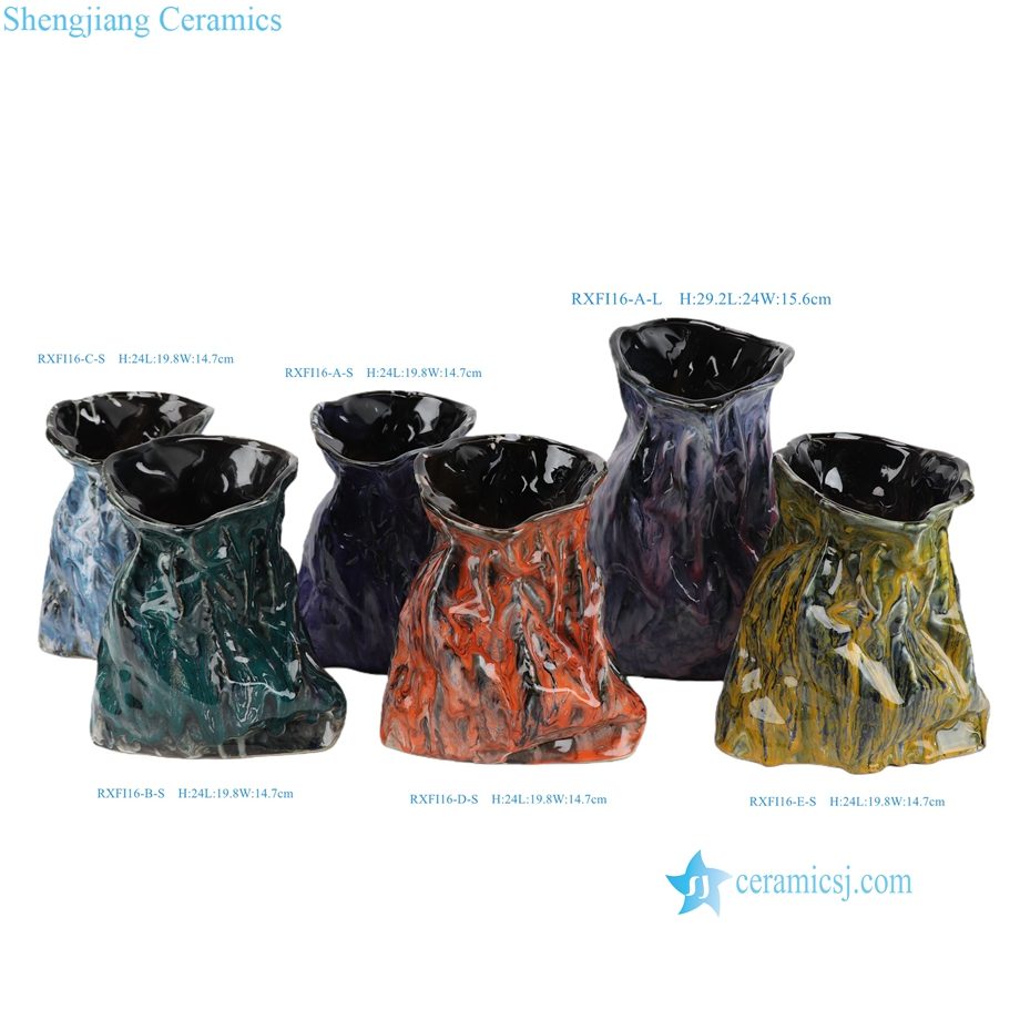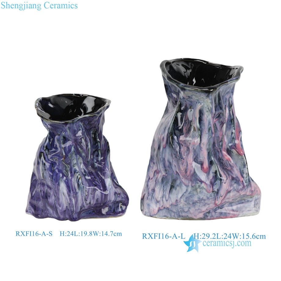 RXFI16 Series Unique Irregular Reactive Glaze Vase Red Blue Purple Jingdezhen Pottery Vase |