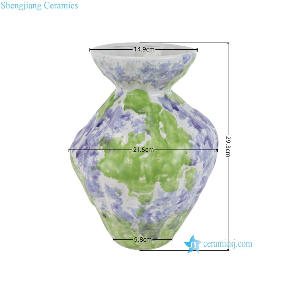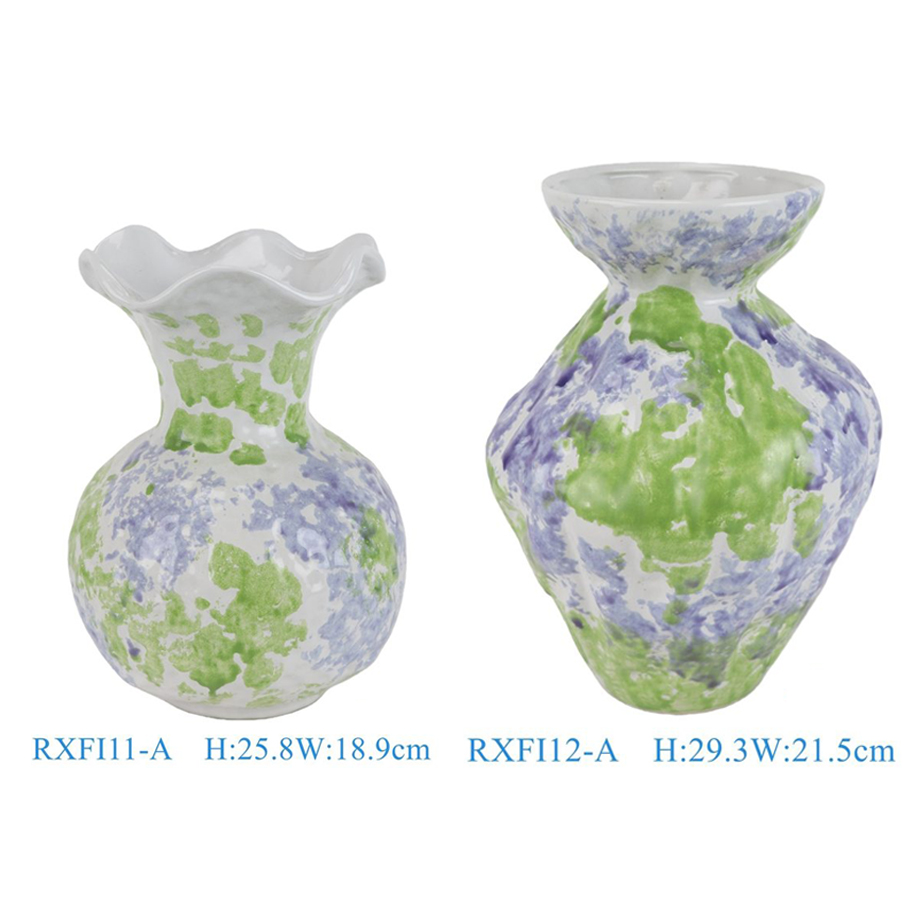 RXFI11-12-A Factory Price Unique Modern Artistic Kiln-transformed Glaze Green-Blue-White Irregular Ceramic Vase for Modern Family Hotel Villa