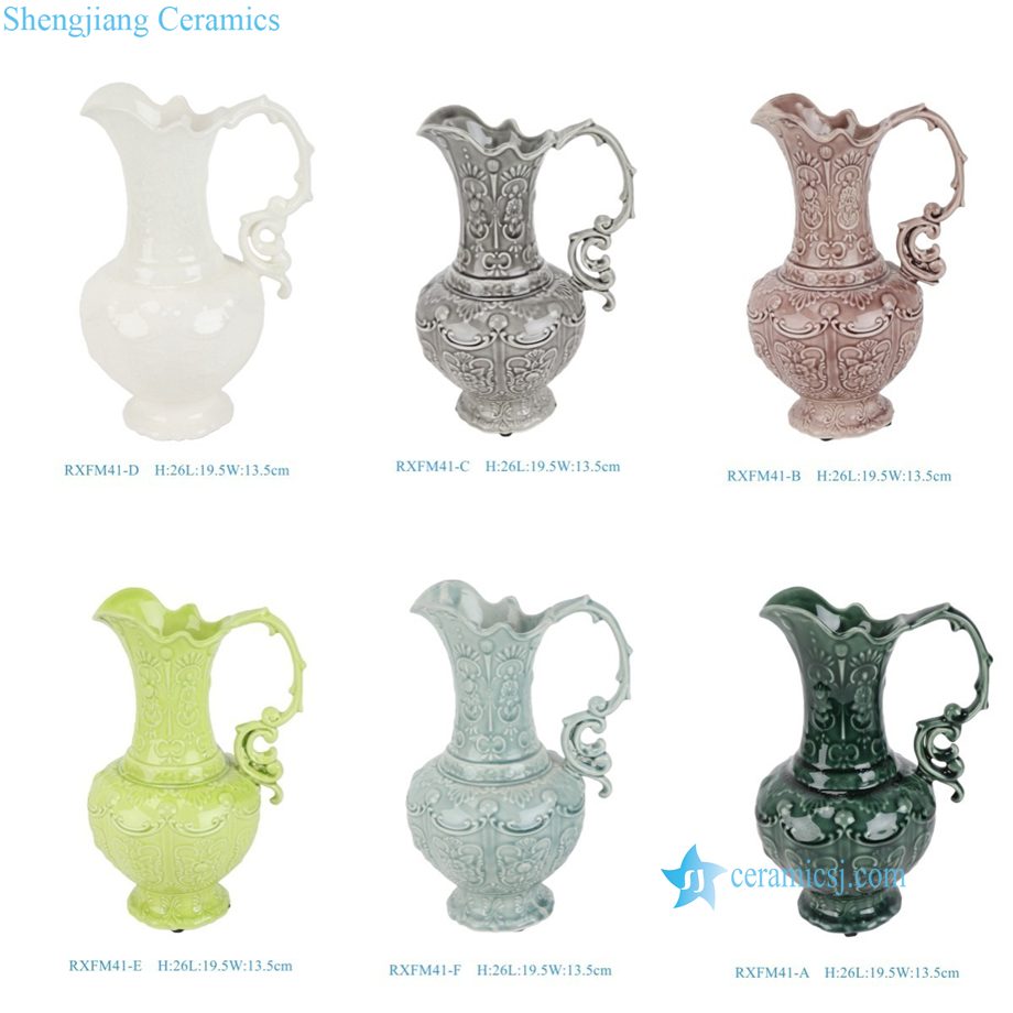 RXFM41-A-B-C-D-E-F Beautiful Decorative Carved Floral Pattern Handheld Ceramic Vase for Modern Family Hotel Villa