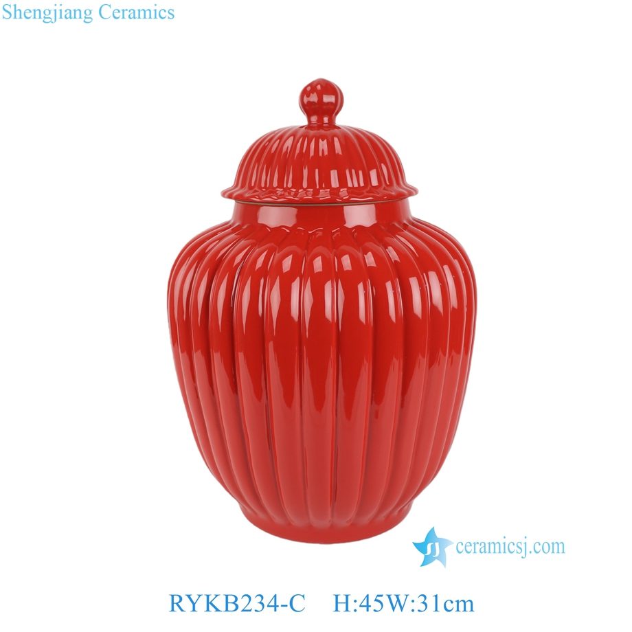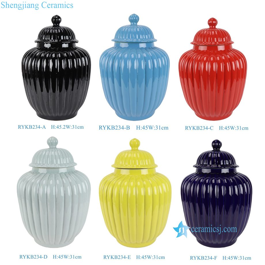 RYKB234 Series Six Solid Color Glazed Ribbed Ginger Jar Traditional Chinese Porcelain Home Decor Vase |