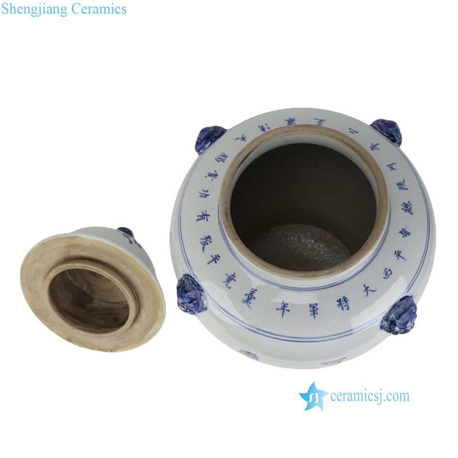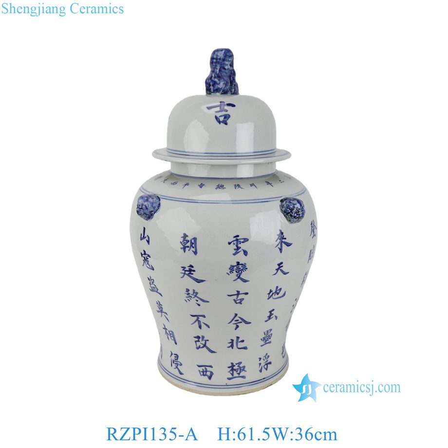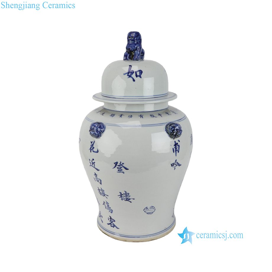 RZPI135-A Large Blue and White Porcelain General Jar with Calligraphy and Lion Lid