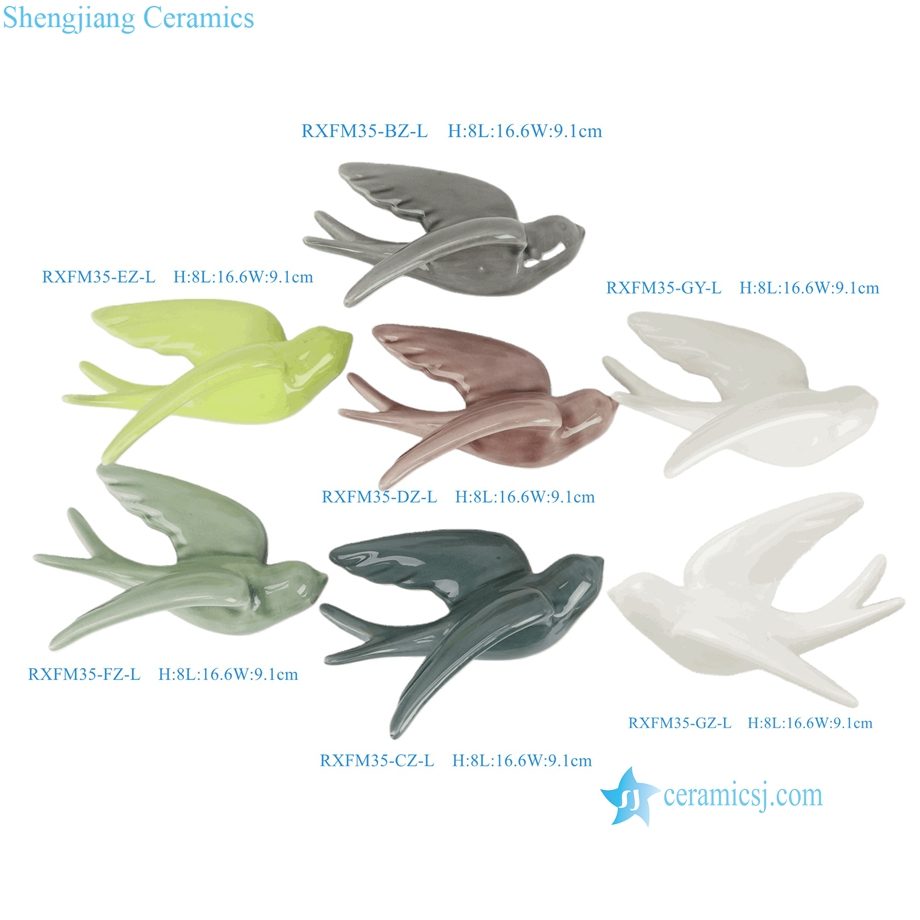 RXFM35 3D Flying Birds Wall Decoration Ceramic Sculptures Ornament for Home Decoration