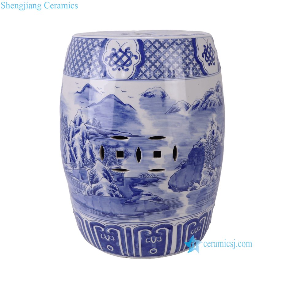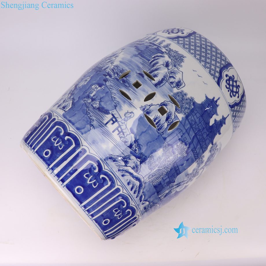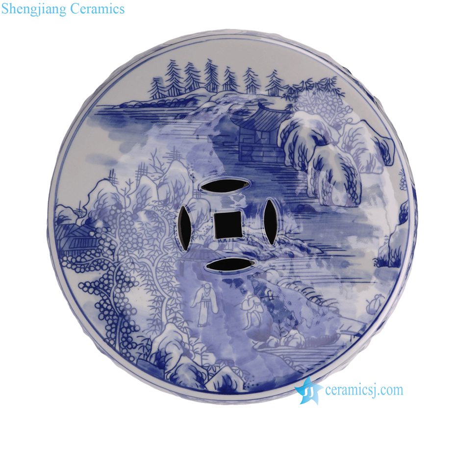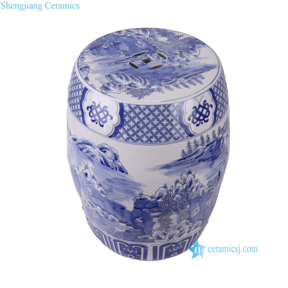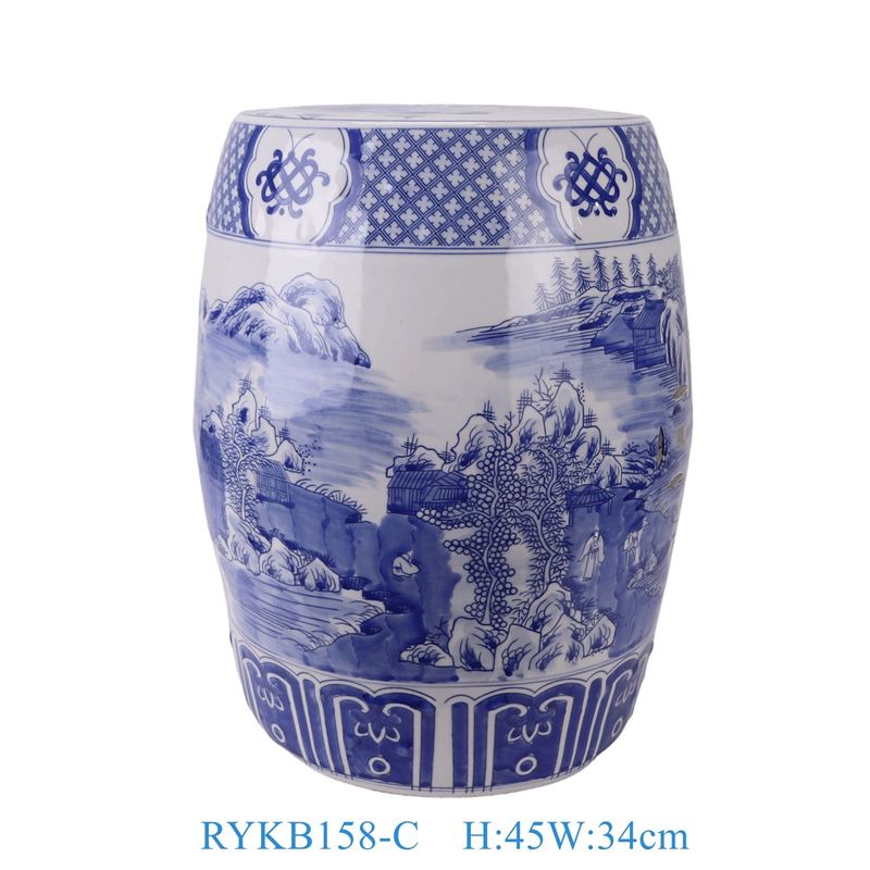 RYKB158-C Wholesale Blue White Landscape Motif Porcelain Stool for Home Decor Balcony Garden