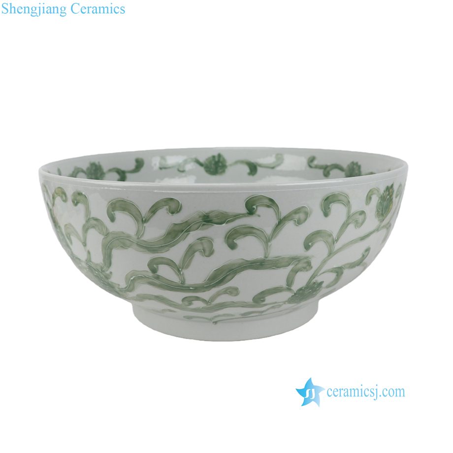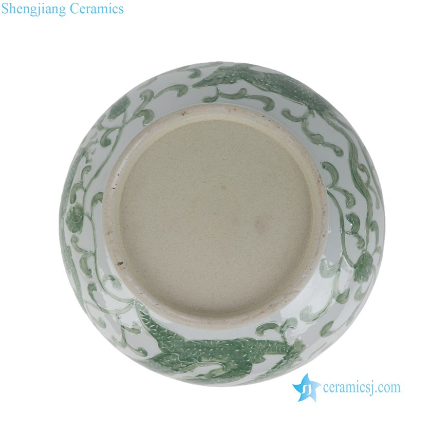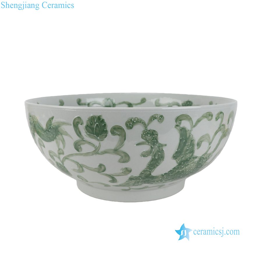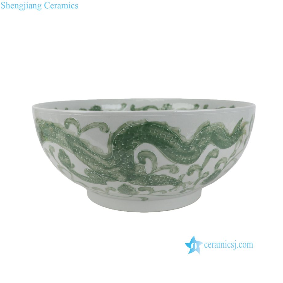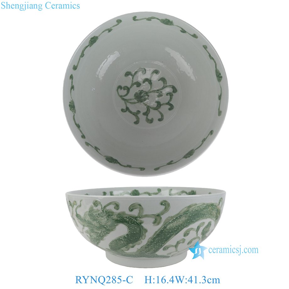 RYNQ285-C Extra Large Hand-Painted Green Dragon Decorative Ceramic Bowl for Plants Grower Narcissus