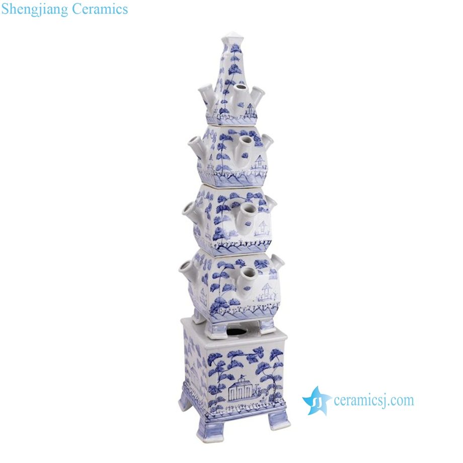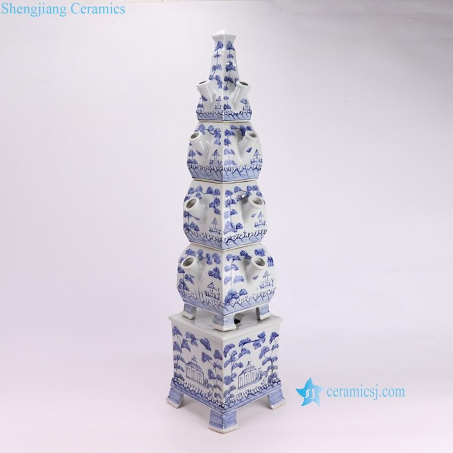 RZKR53-B Jingdezhen Customize Ceramic Tulipiere Large Blue and White Pagoda Accent Chinoiserie Vase