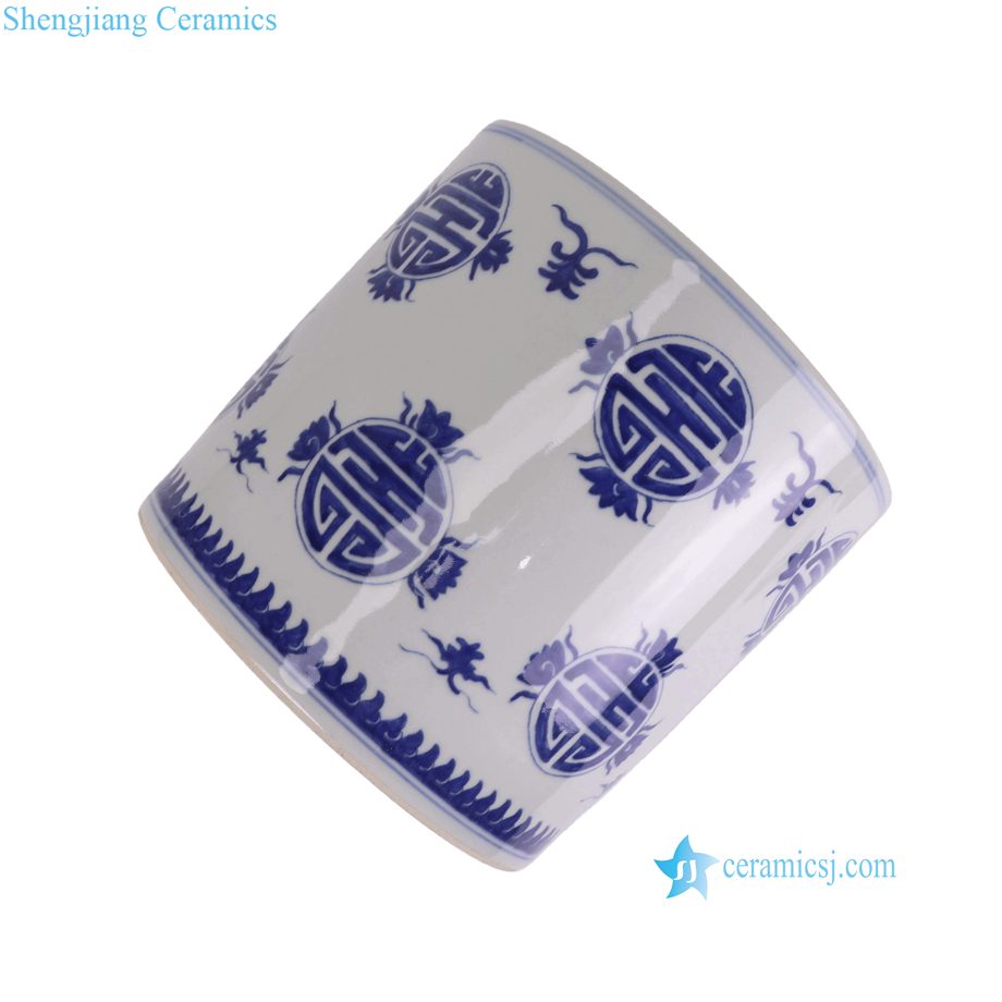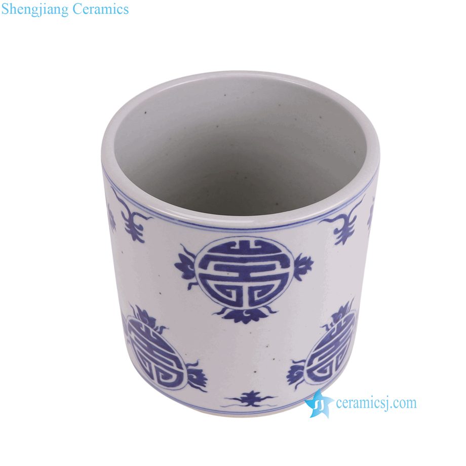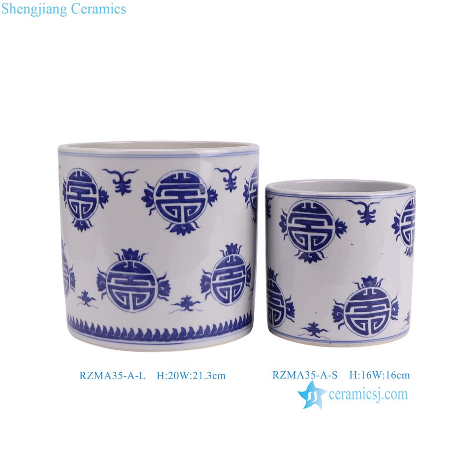 RZMA35-A-L-S Chinese Chinoiserie Blue and White Longevity Pattern Nesting Planters Ceramic Pots
