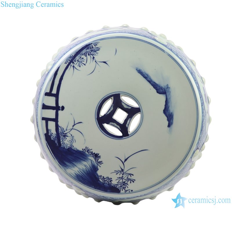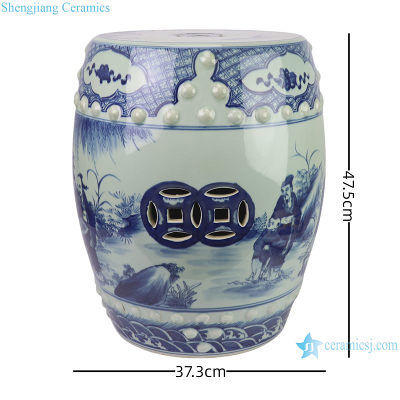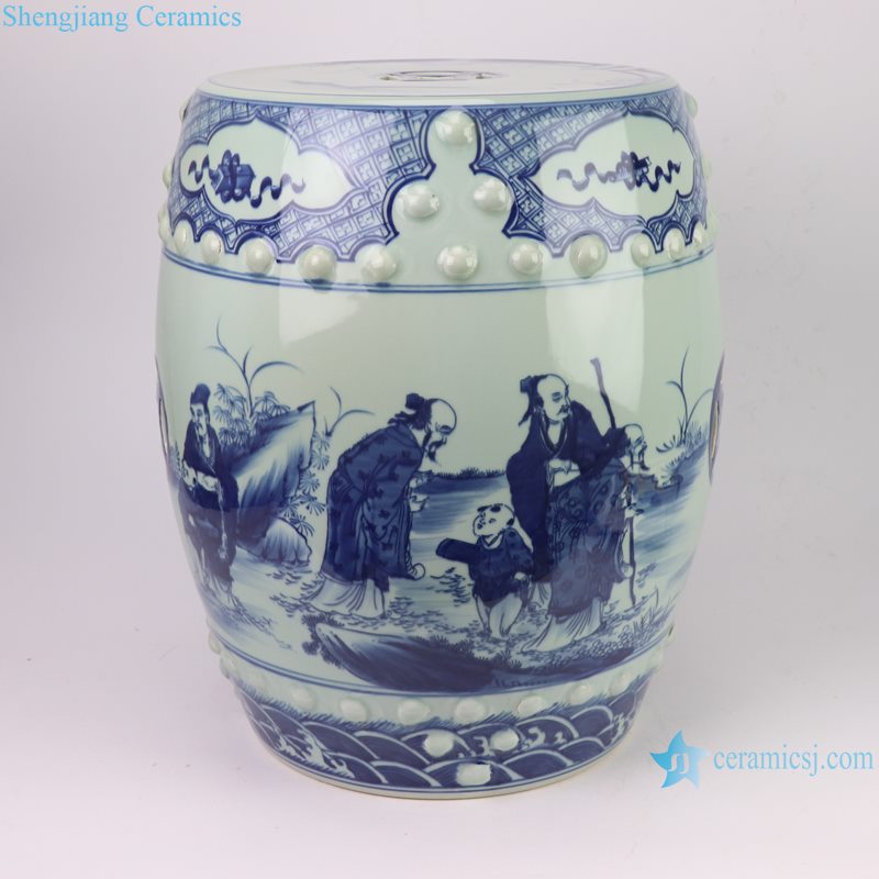 RYUC08-B Wholesale Hand Painted Blue White Figures Character Story Motif Durable Porcelain Stool for Home Decor Balcony Garden