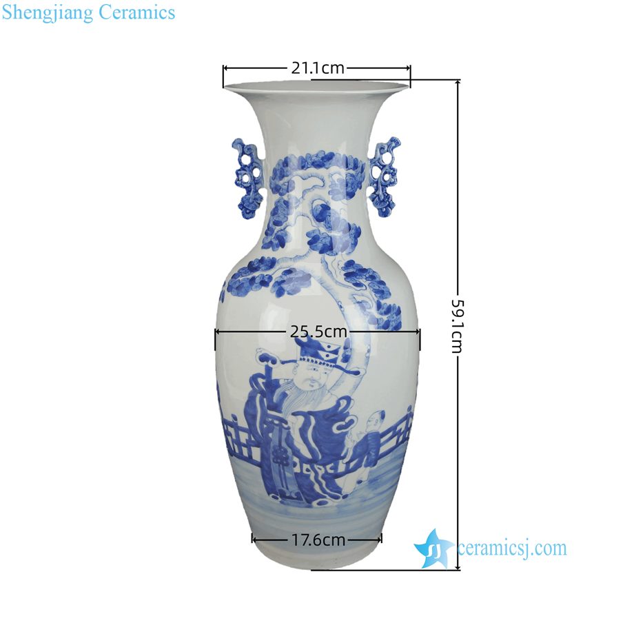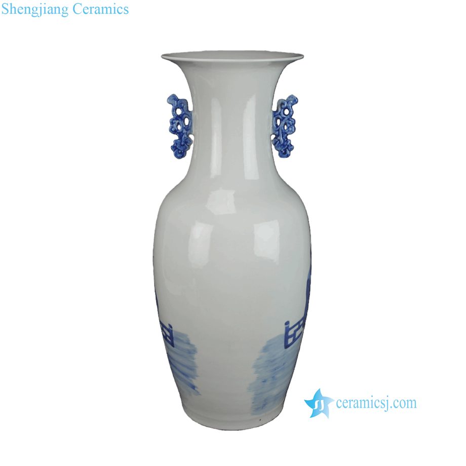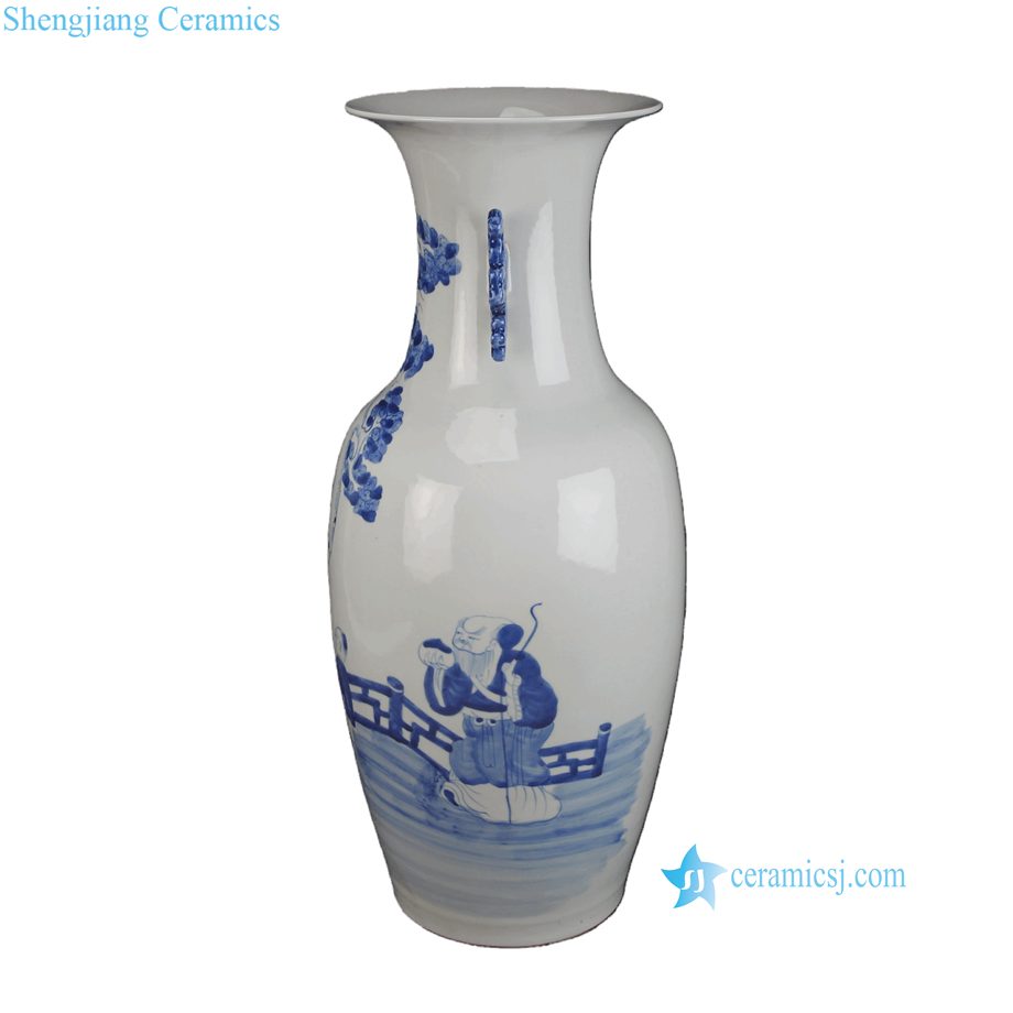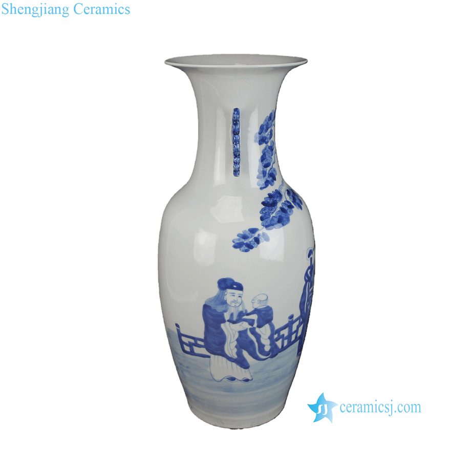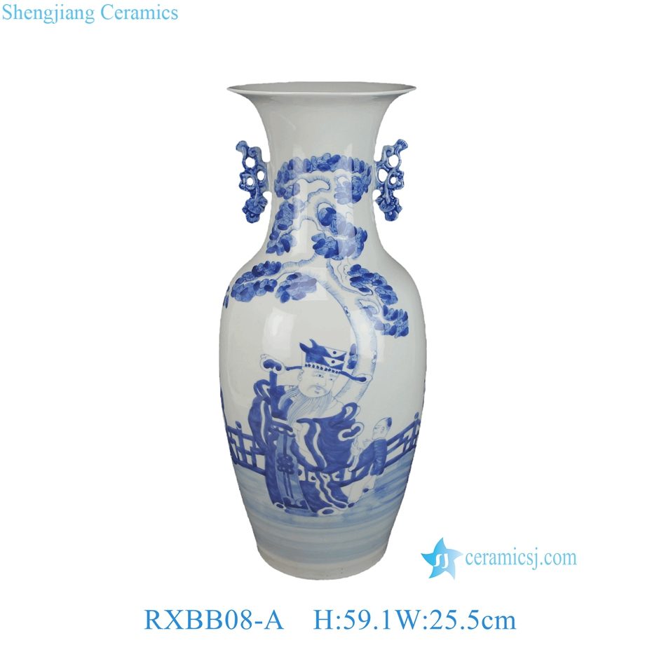 RXBB08-A Antique Hand Painted Blue White Figures Characters Motif Decorative Porcelain Vase with Double Ears for Home Decor Hotel Collections
