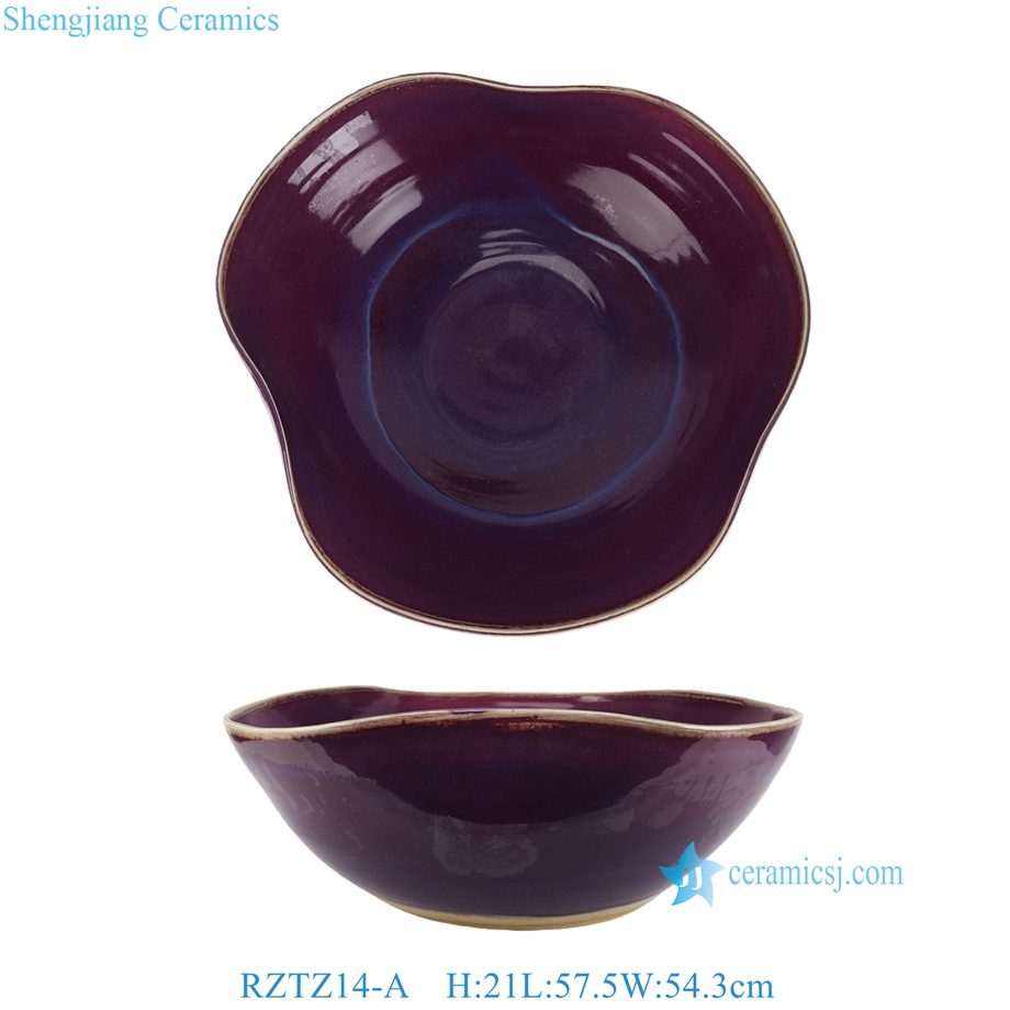 RZTZ14-A Big Lang Red Irregular Shape Durable Decorative Porcelain Bowl for Home Decor Hotel Bonsai