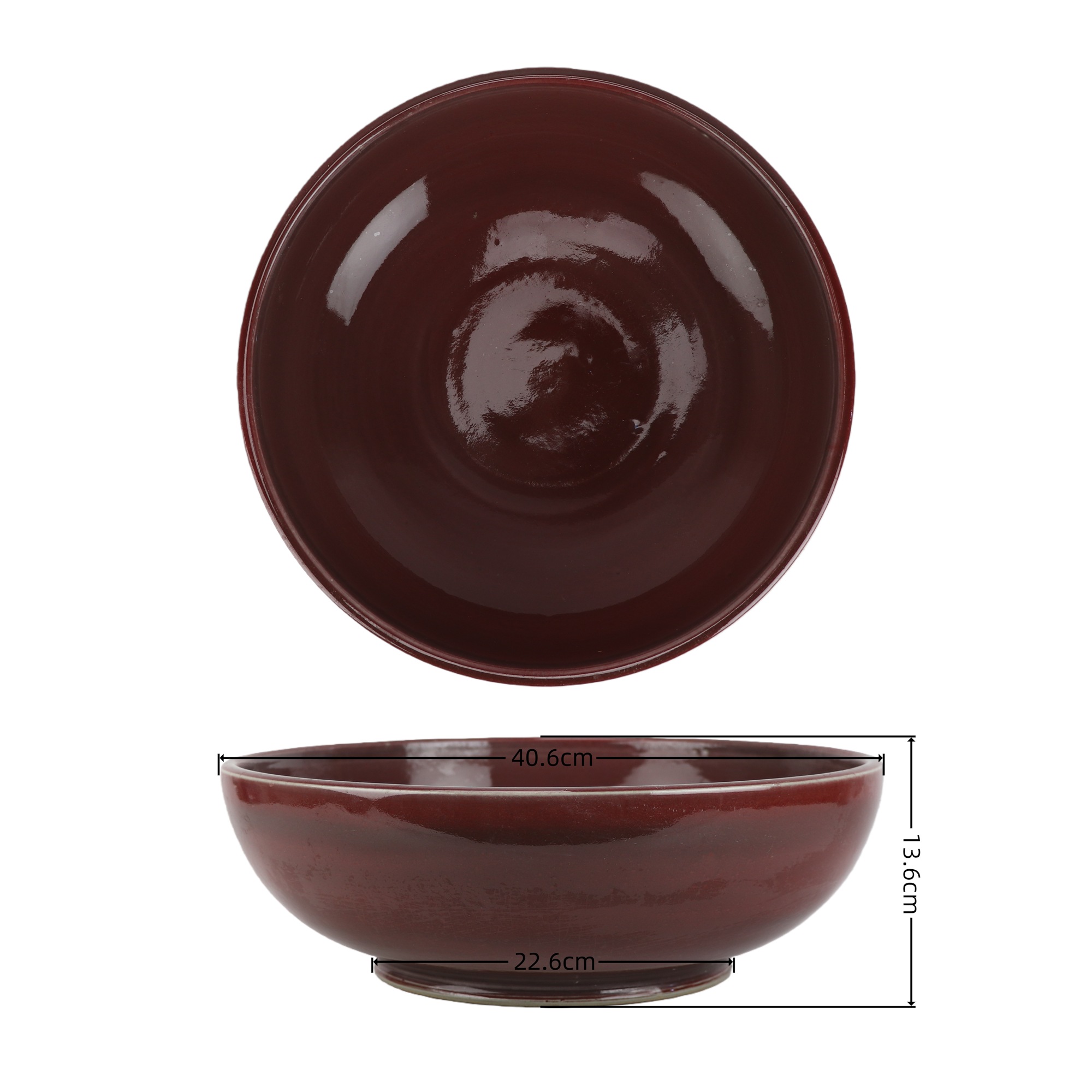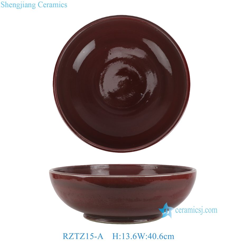 RZTZ15-A Large Lang Red Round Shape Durable High Temperature Fired Decorative Porcelain Serving Bowl for Home Decor Hotel Bonsai