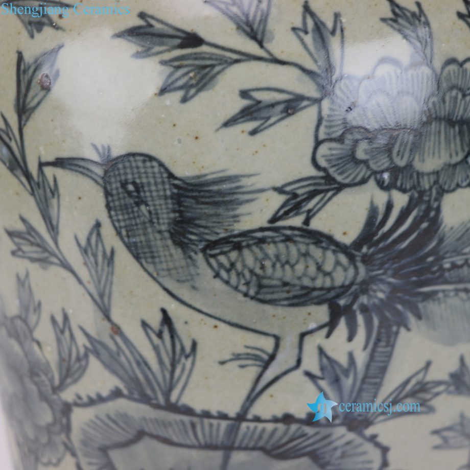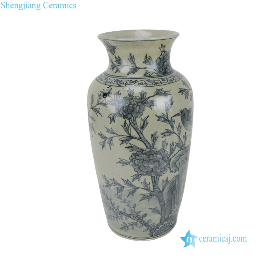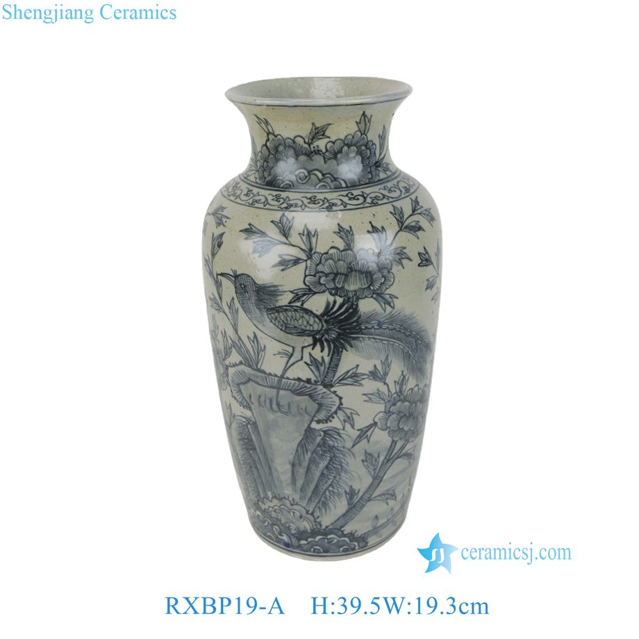 RXBP19-A Popular Antique Old Looking Surface Hand Painted Blue White Floral Birds Decorative Porcelain Vase for Home Decor Hotel USA Market