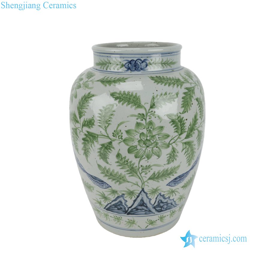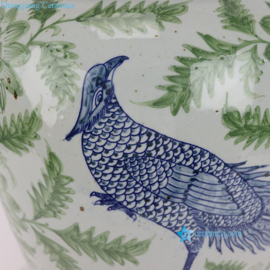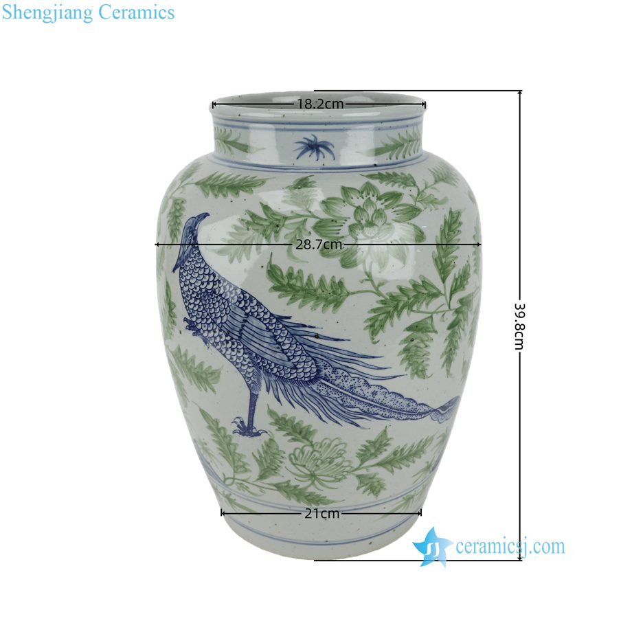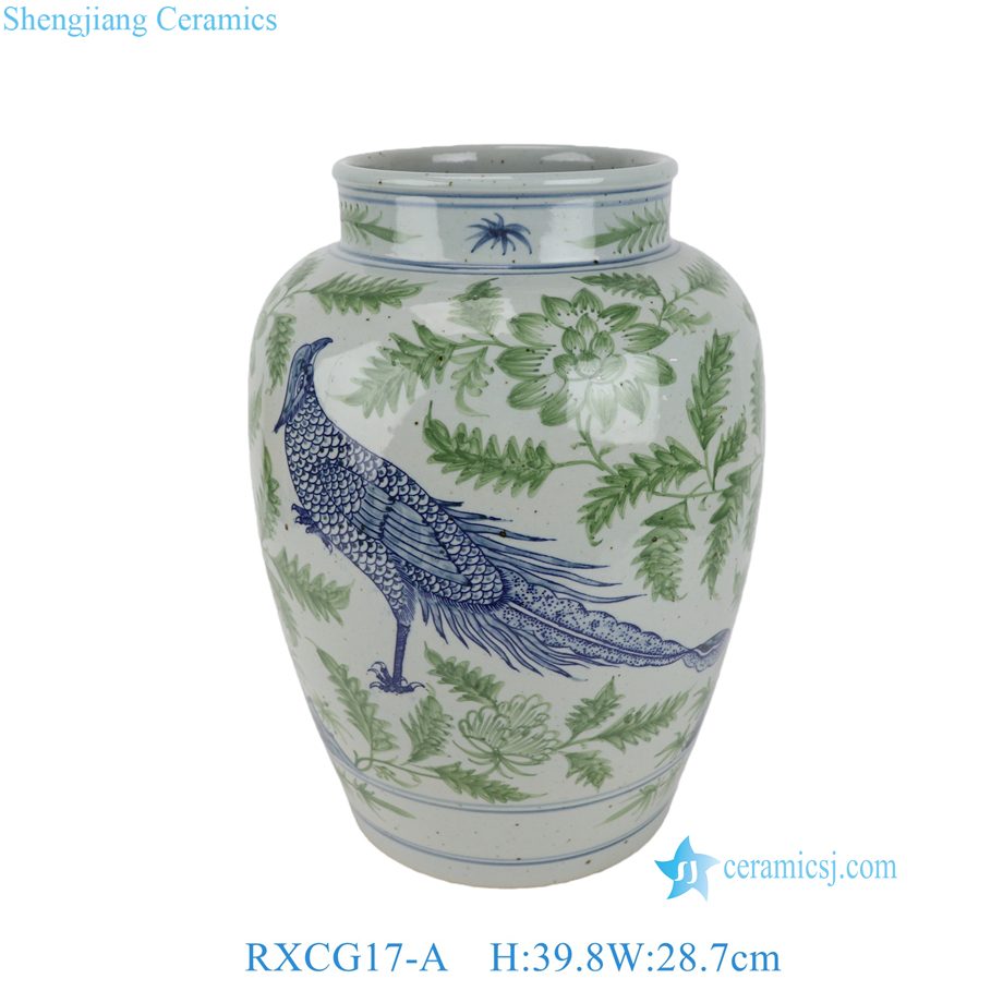 RXCG17-A High Quality Hand Painted Blue Green Flower Birds Pattern Decorative Ceramic Vase for Home Decor Hotel Tabletop