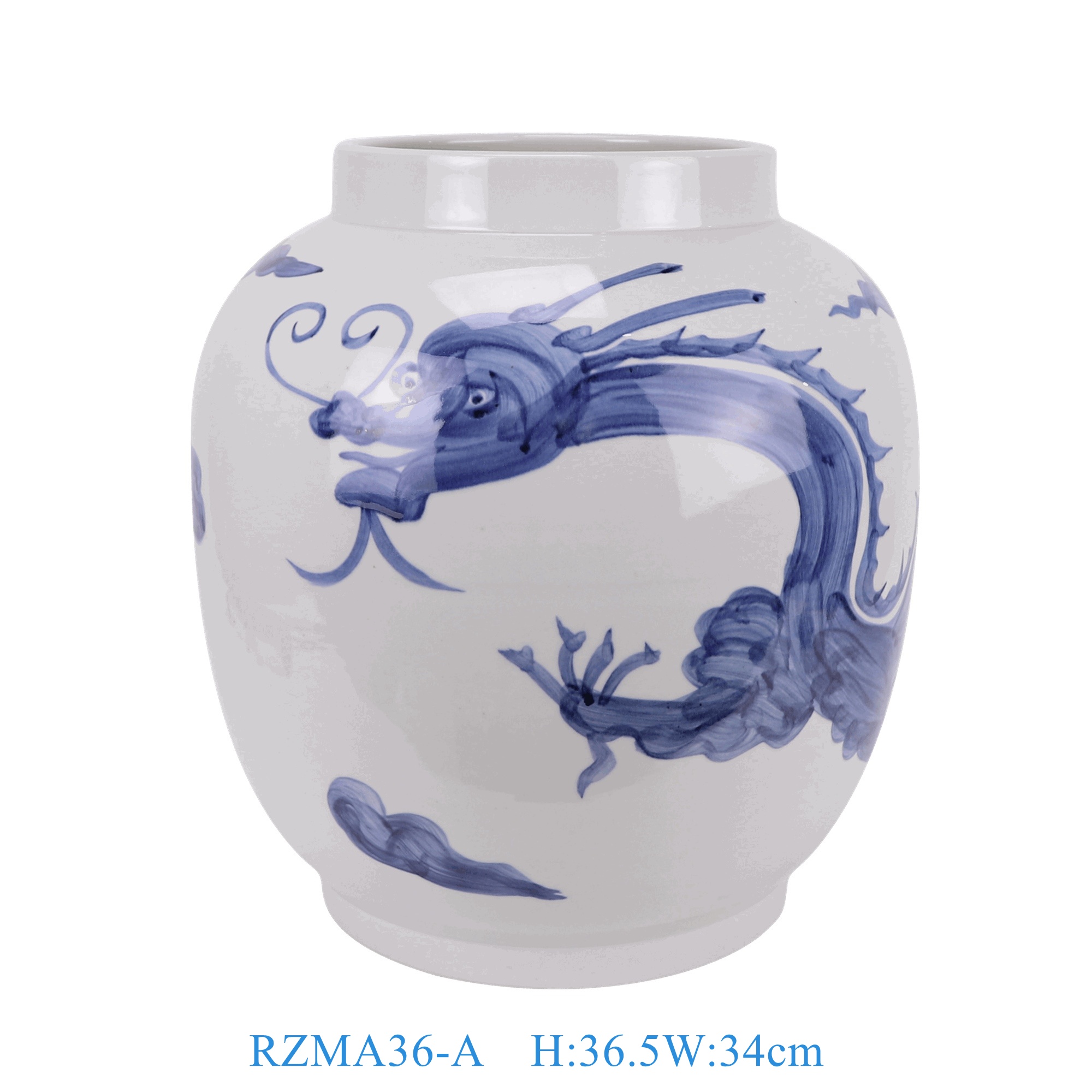 RZMA36-A High Quality Hand Painted Blue White Dragon Pattern Decorative Ceramic Vase for Home Decor Hotel Tabletop