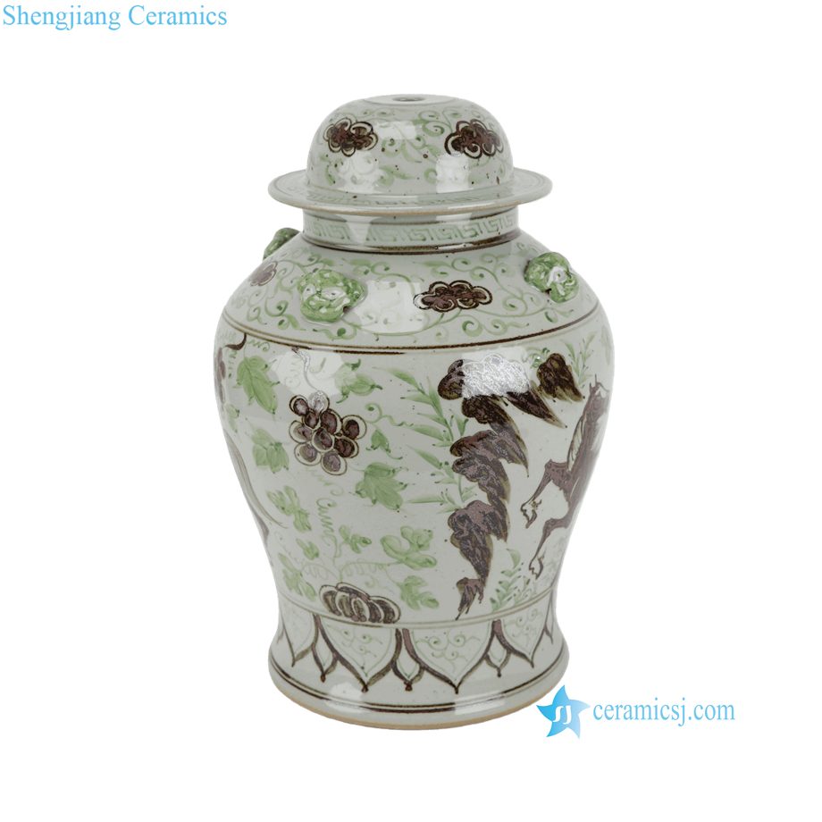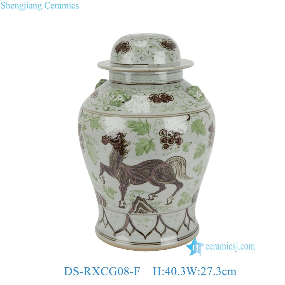 DS-RXCG08-F High Quality Brown Green Grape Horse Pattern Porcelain Jar for Table Lamp