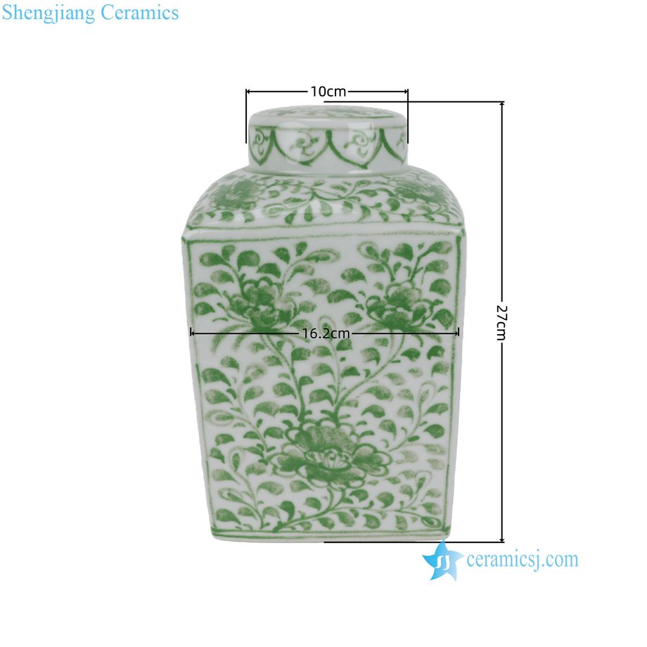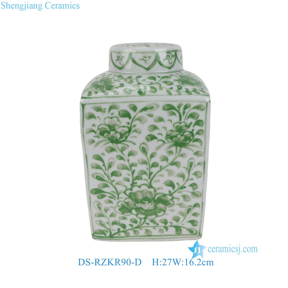 DS-RZKR90-D Popular Hand Painted Green White Tangled Branch Motif Square Shape Porcelain Table Lamp Body for Light
