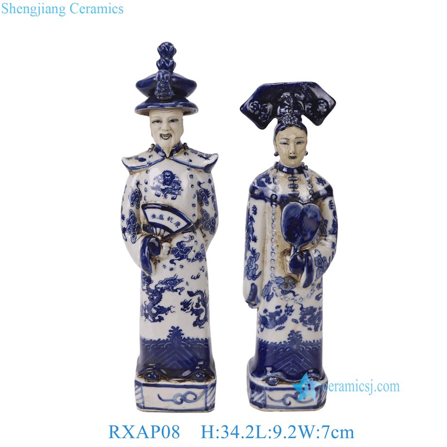 Item No. | RXAP08 Hand Painted Blue White Chinese Emperor and Empress Porcelain Figurine for Home Decor |
