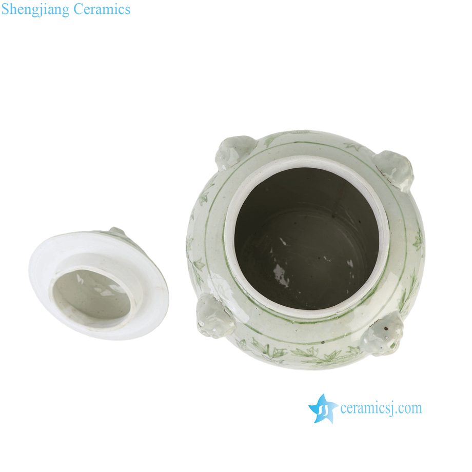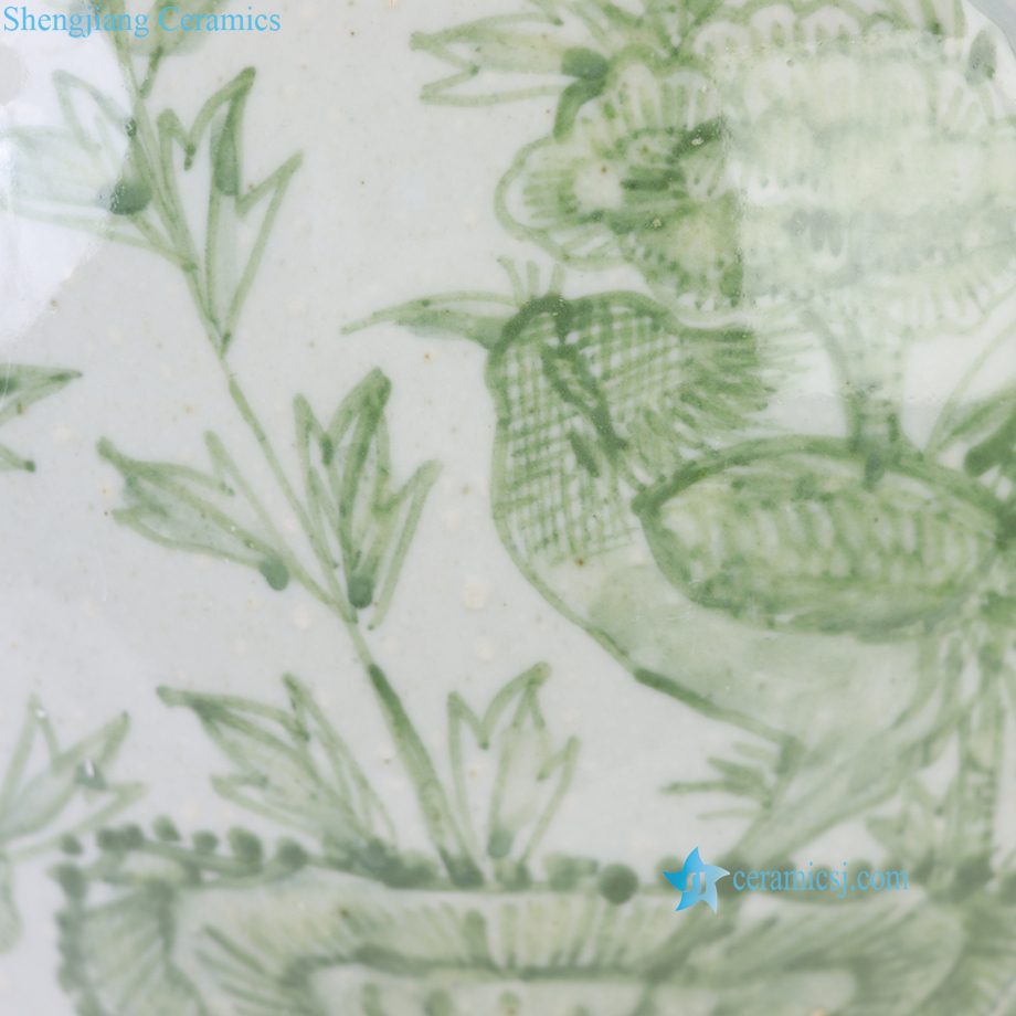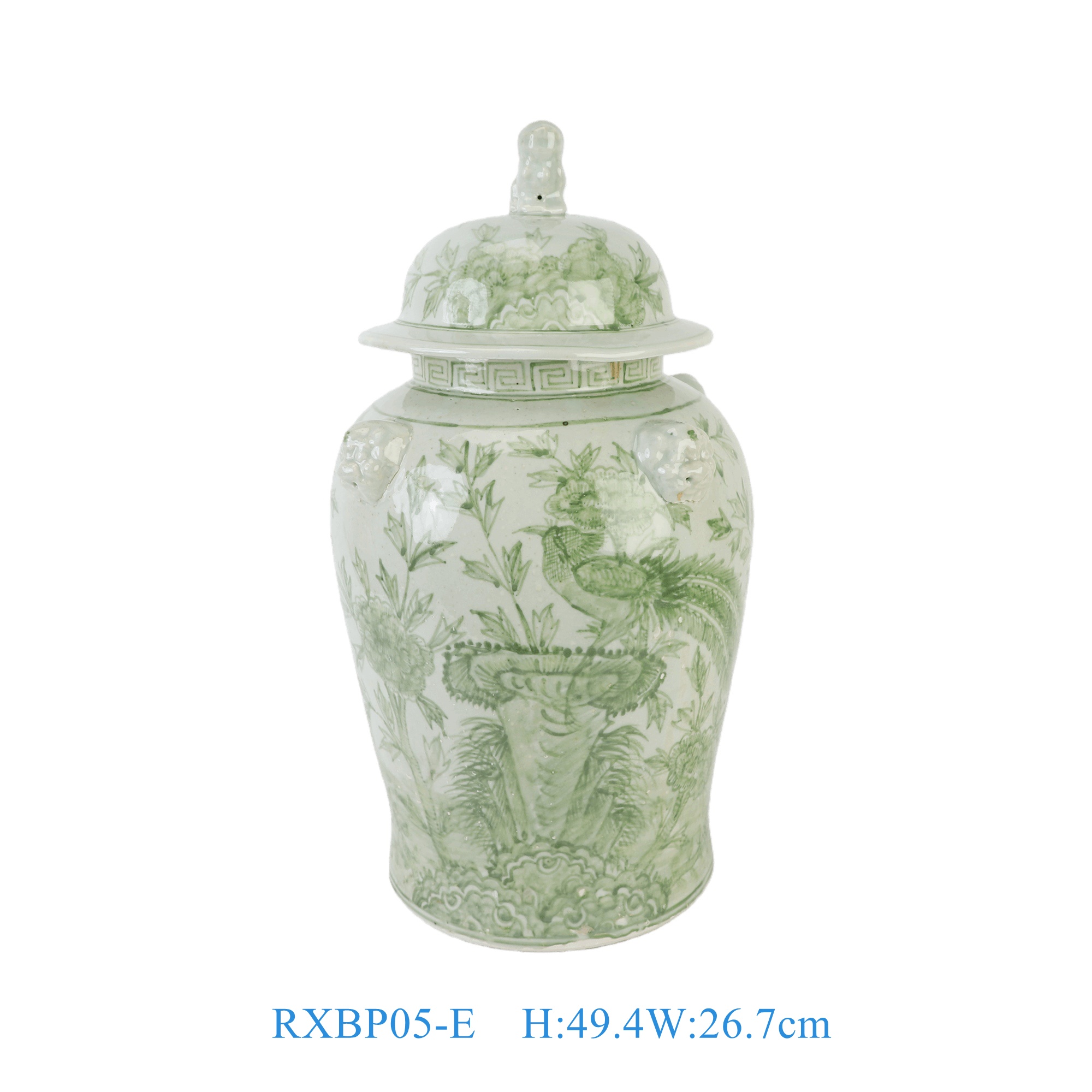 RXBP05-E Chinoiserie Hand Painted Green White Floral Birds Motif Porcelain Decorative Temple Jar for Home Decor Hotel Villa