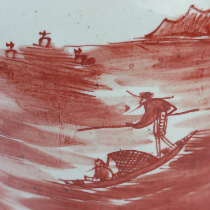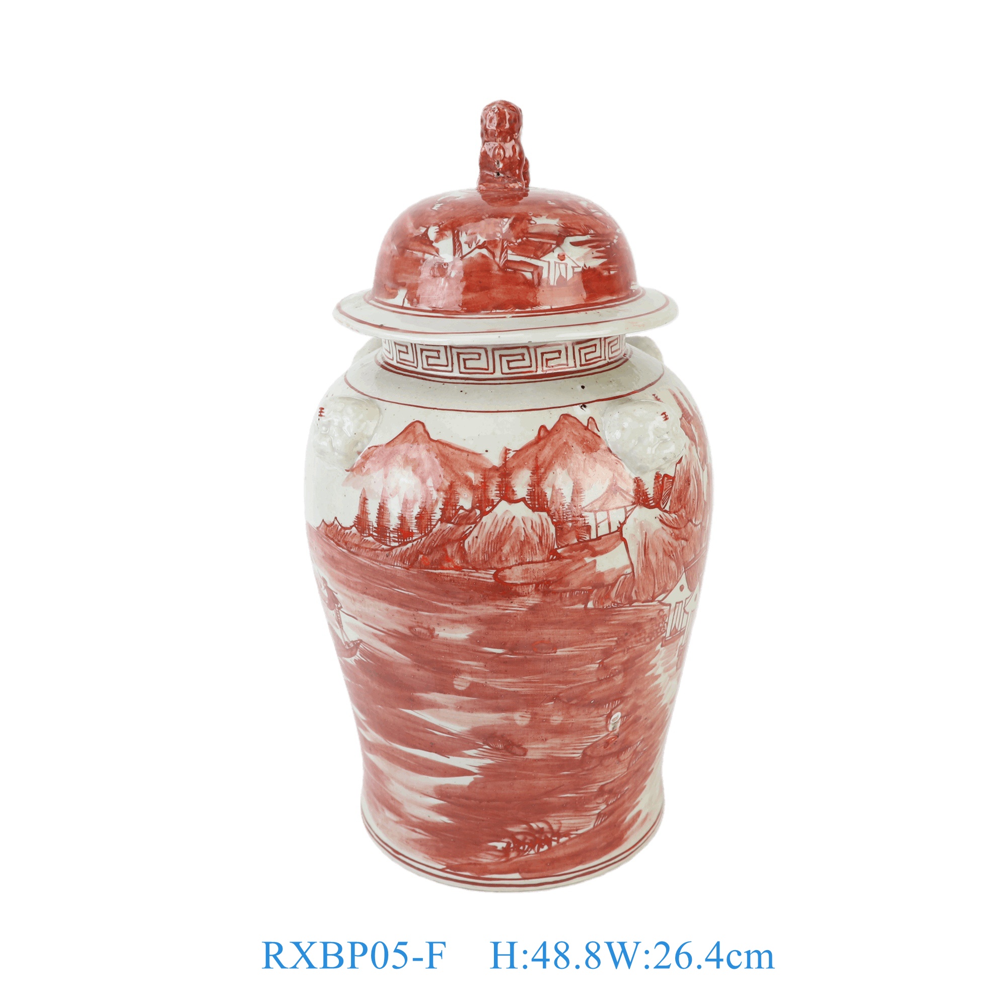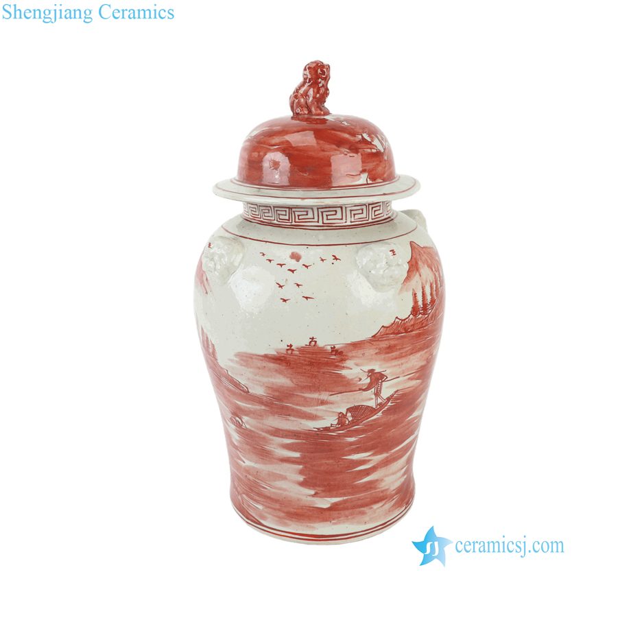 RXBP05-F Jingdezhen Oriental Hand Painted Red White Landscape Motif Porcelain Decorative Temple Jar for Home Decor Hotel Villa
