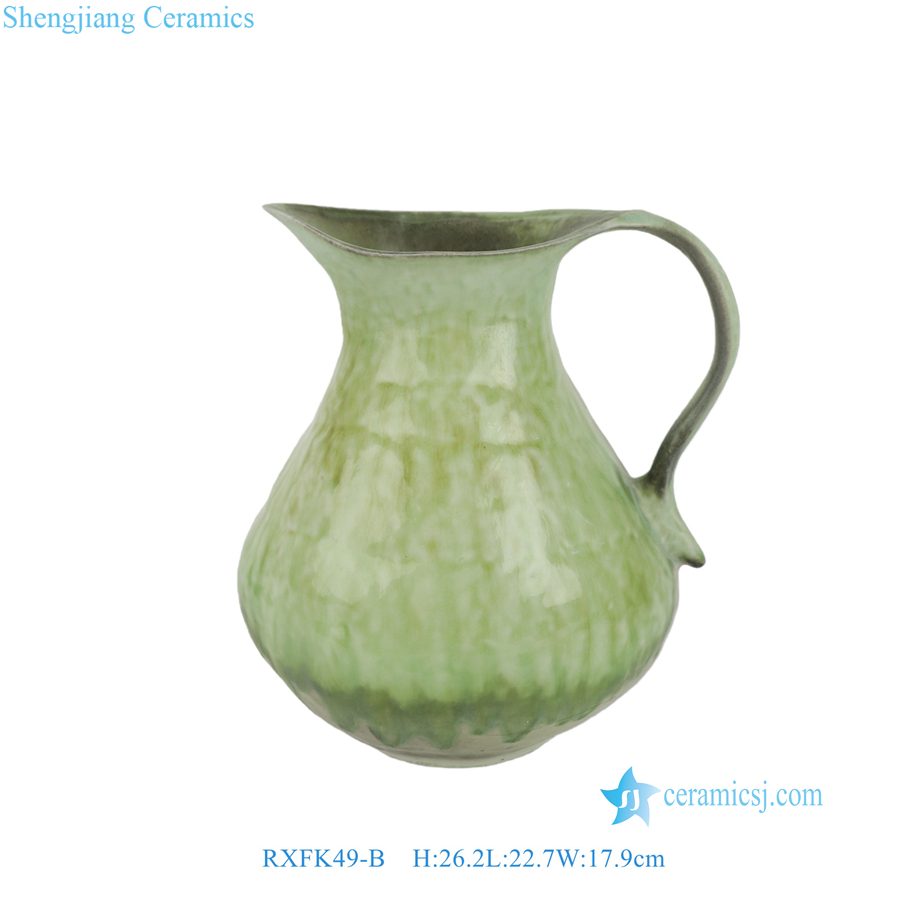 RXFK49-A-B Vintage Ceramic Pitcher Vase Rustic color Green Farmhouse Flower Jug