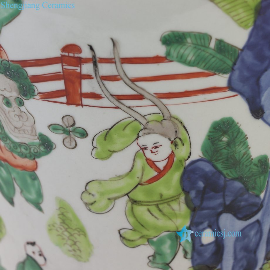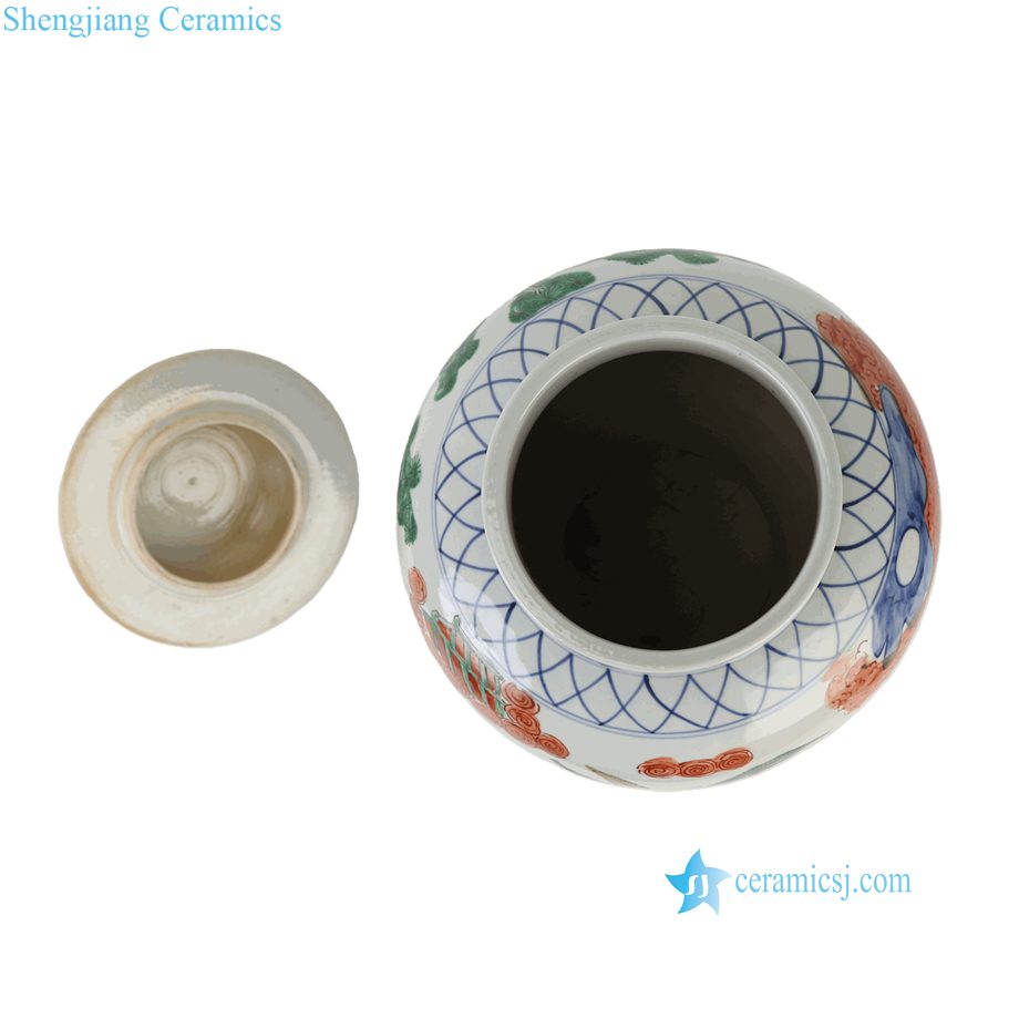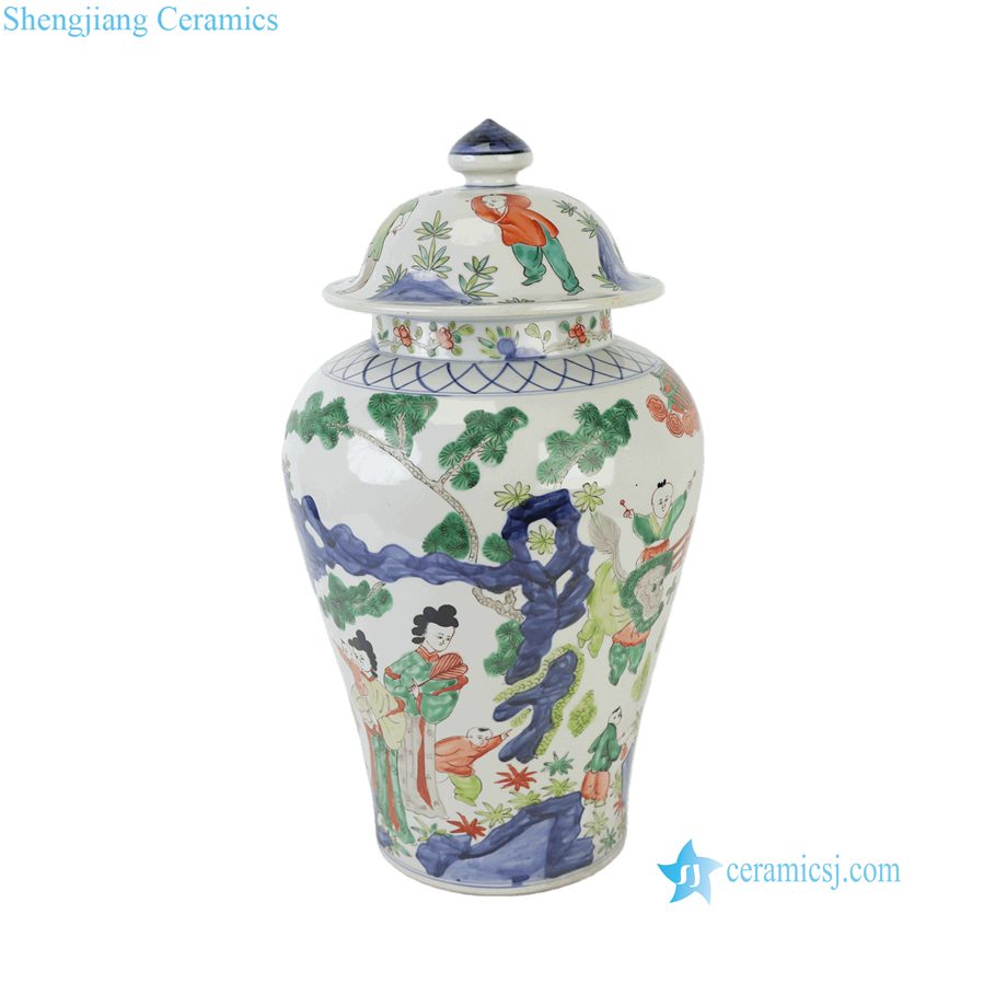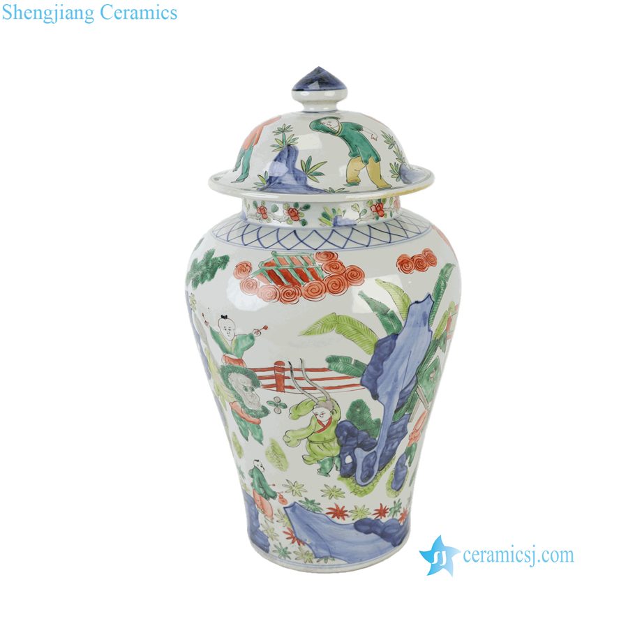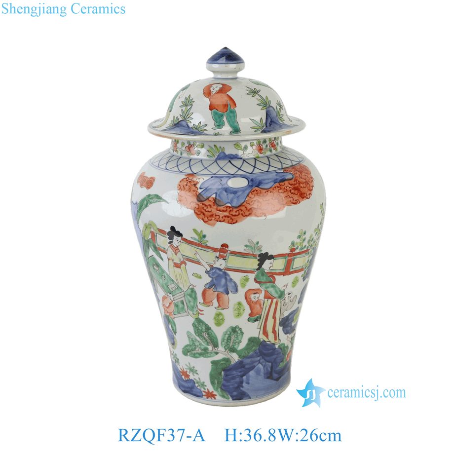 RZQF37-A Imari Style Hand Painted Wucai Decorative Porcelain Temple Jar with Figure Scenes of Ladies and Kids