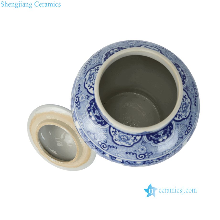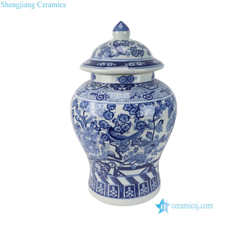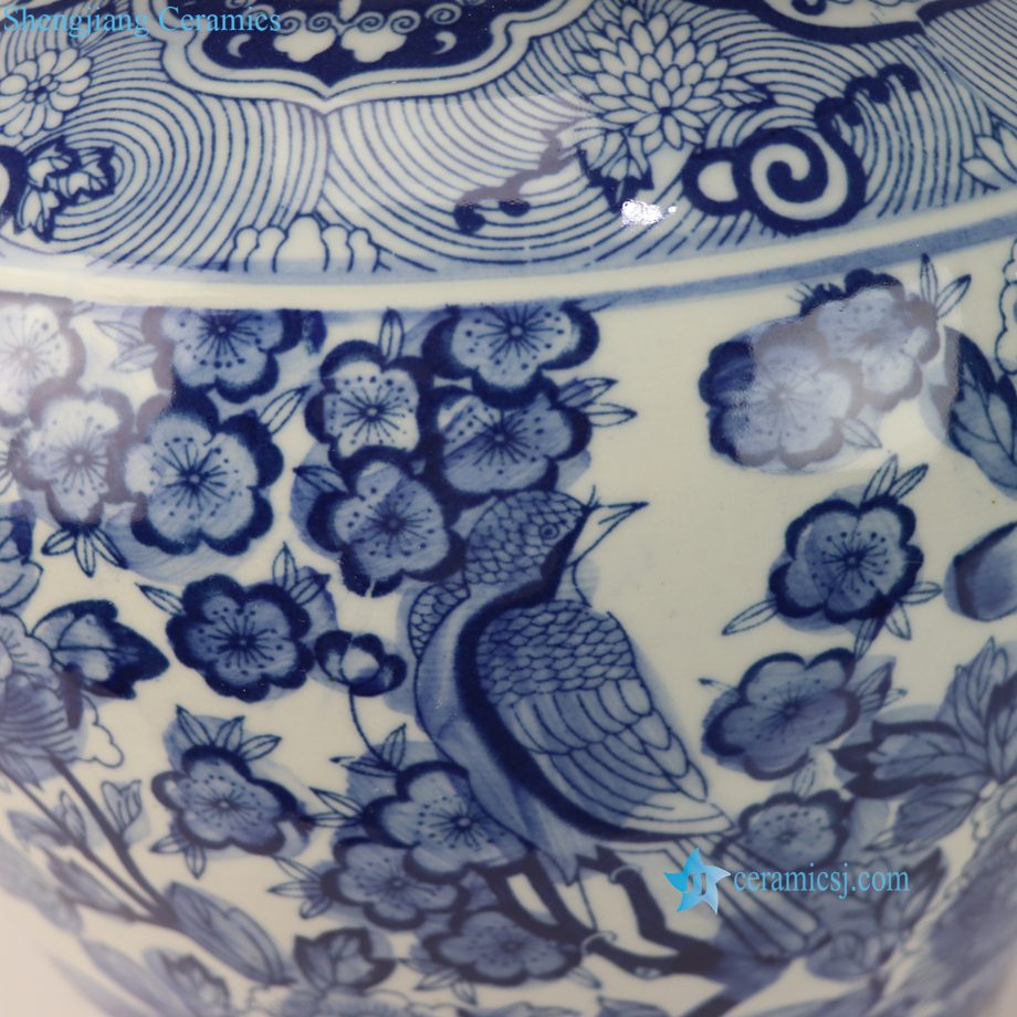 RZSI15-B Oriental Cheap Price Blue White Floral Birds Pattern Porcelain Temple Jar Urn for Living Room Hotel Villa