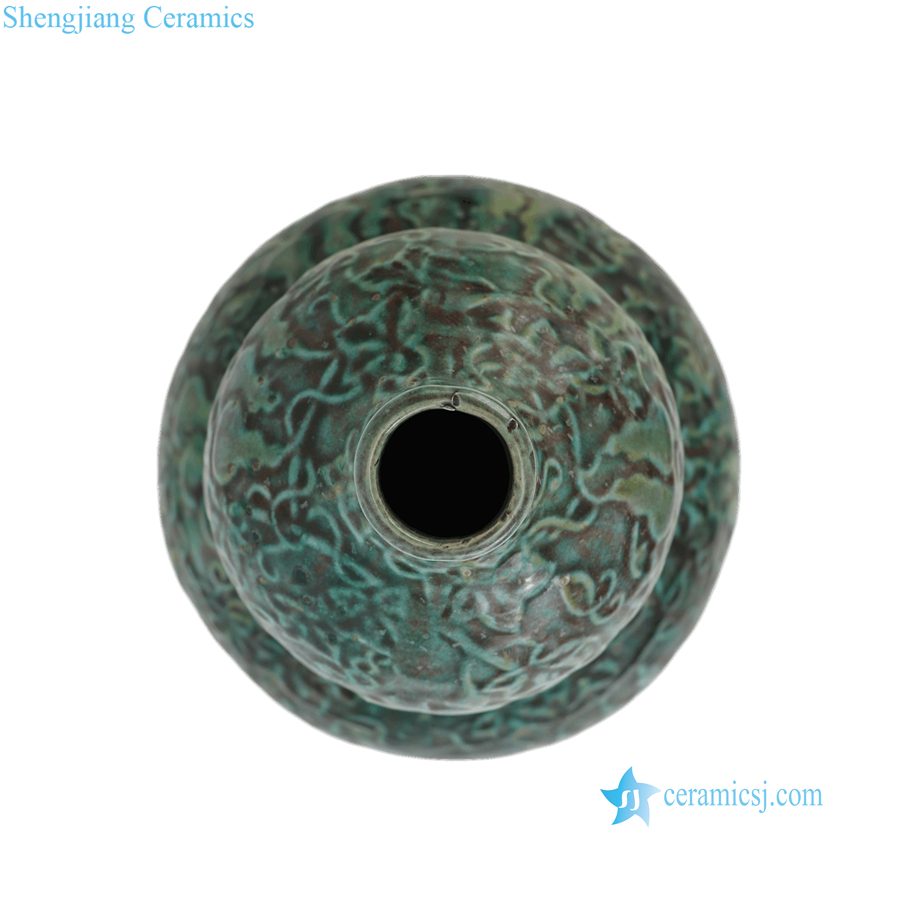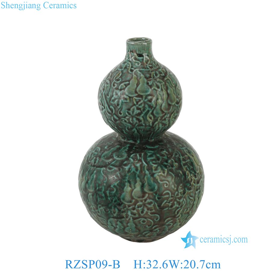 RZSP09-B Antique Green Speckled Ceramic Gourd Vase