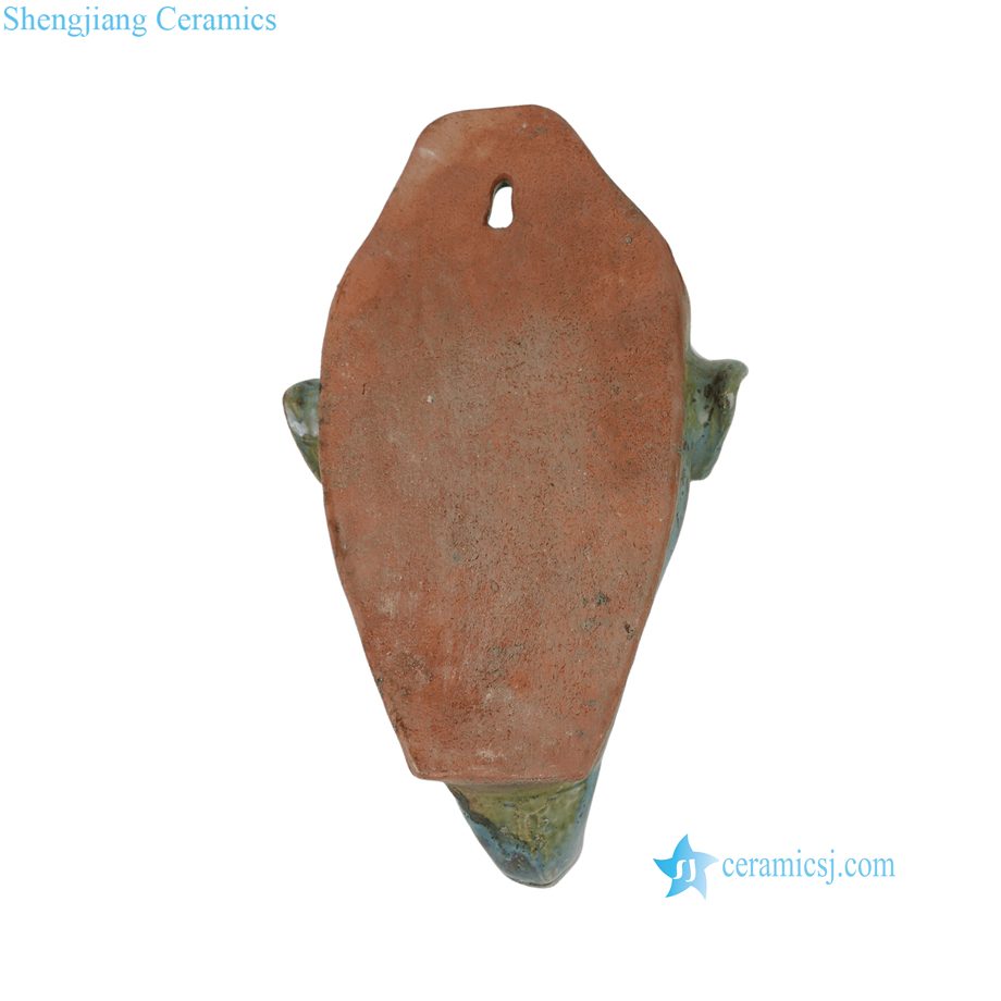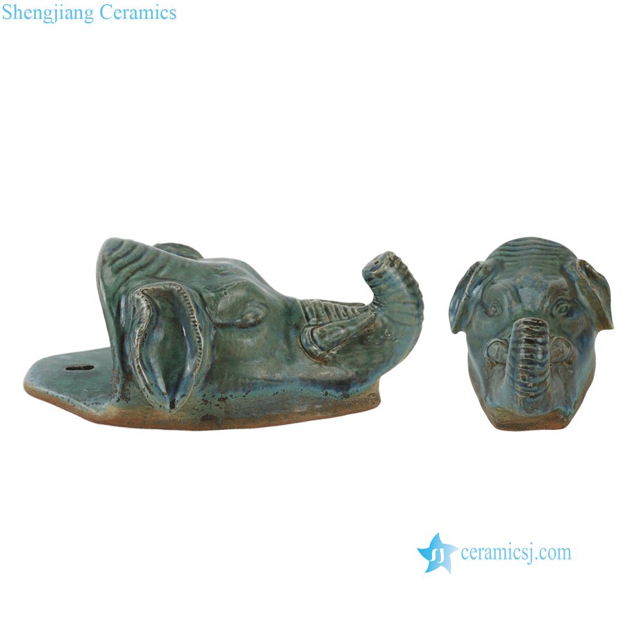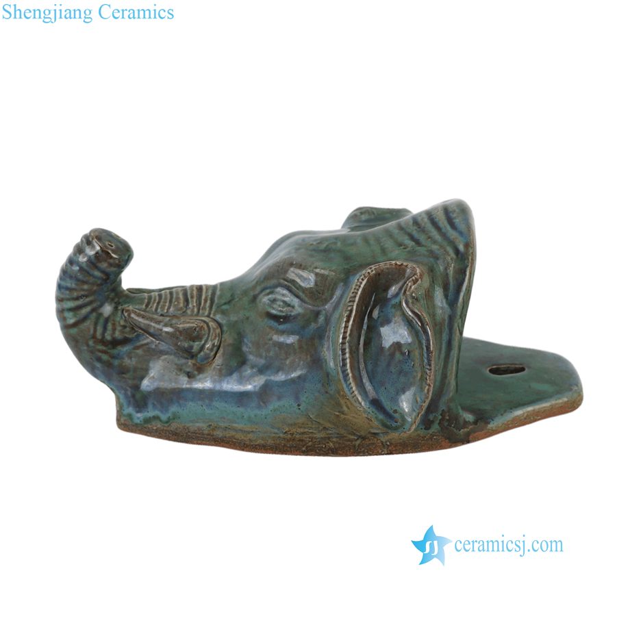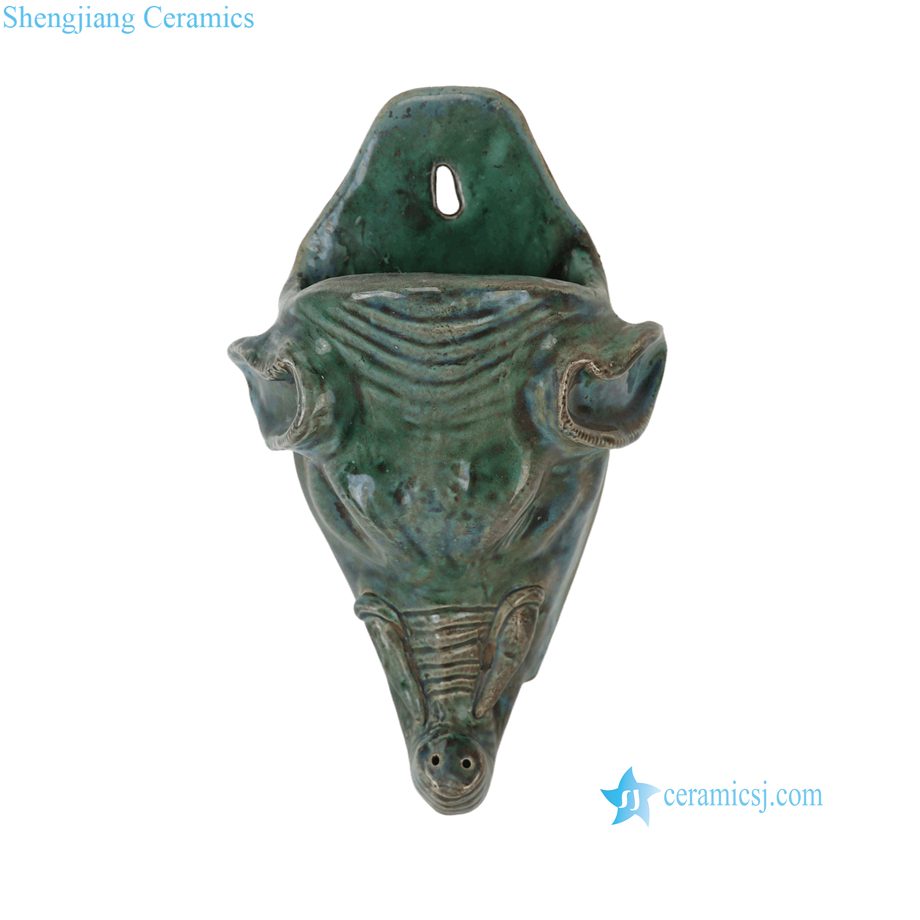 RZSP104-A Reactive Green Glazed Elephant Head Hanging Ceramic Wall Decor Statue