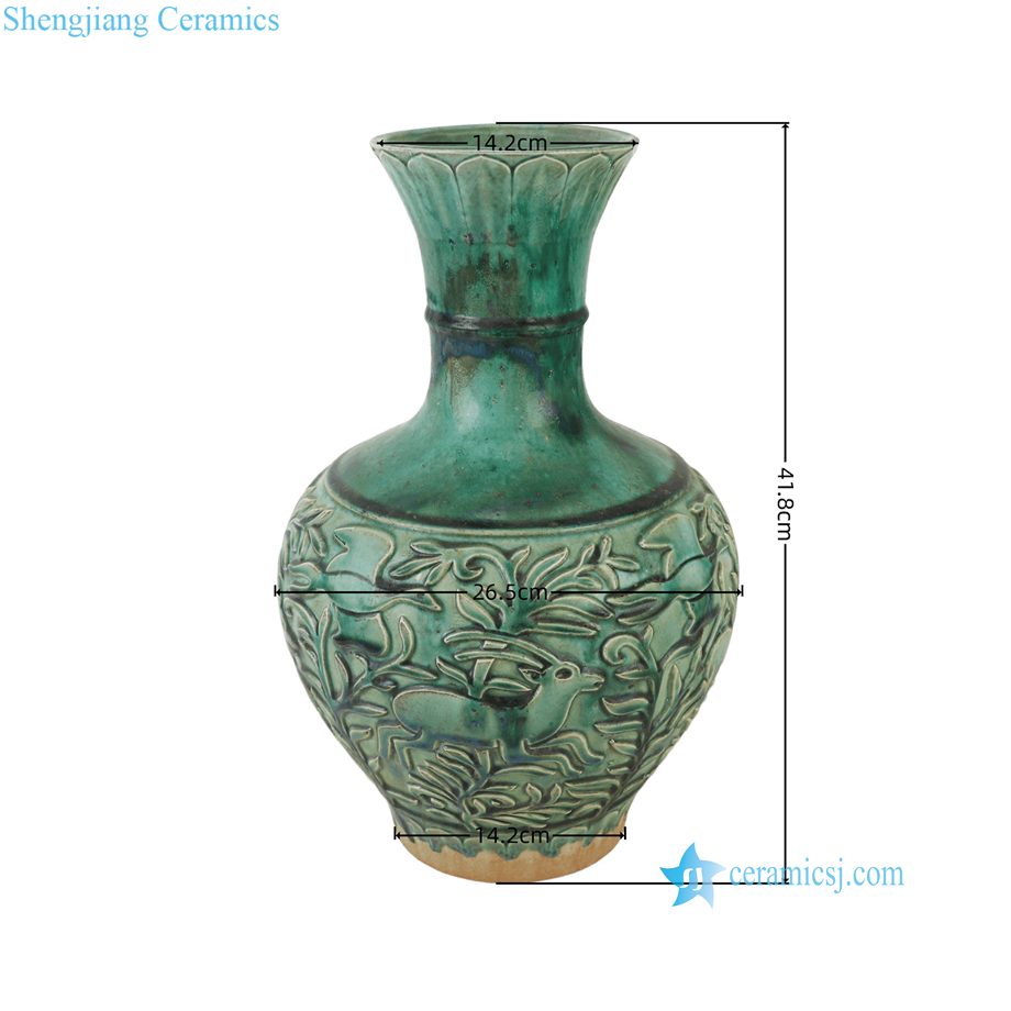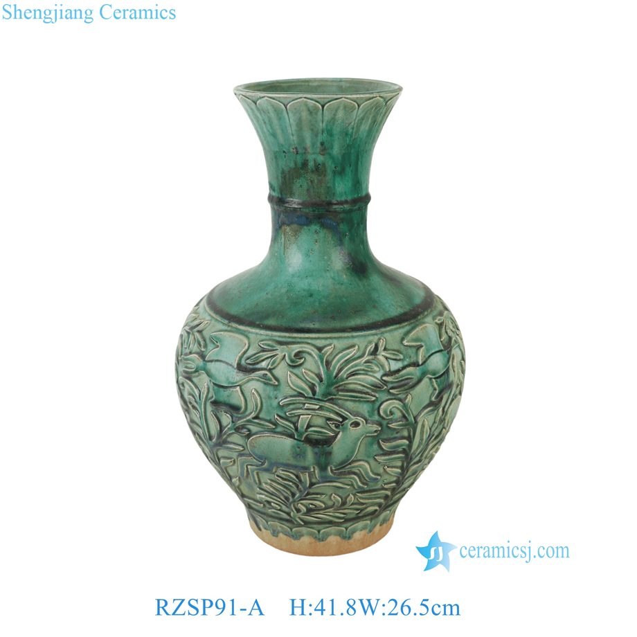 RZSP91-A Antique Green Floral Pattern Carved Ceramic Decorative Vase