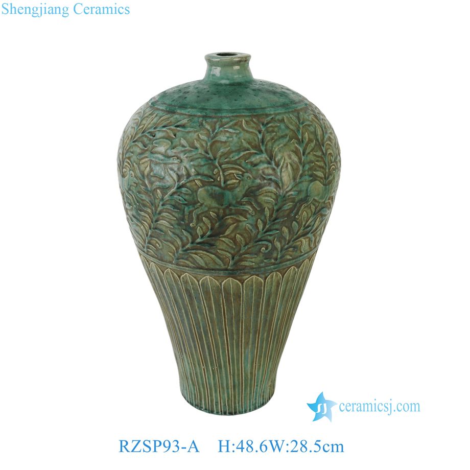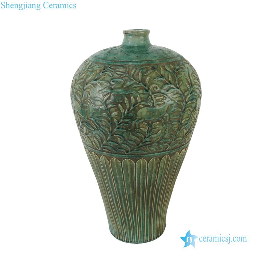 RZSP93-A Jingdezhen Speckled Green Carved Dragon Ceramic Plum Vase