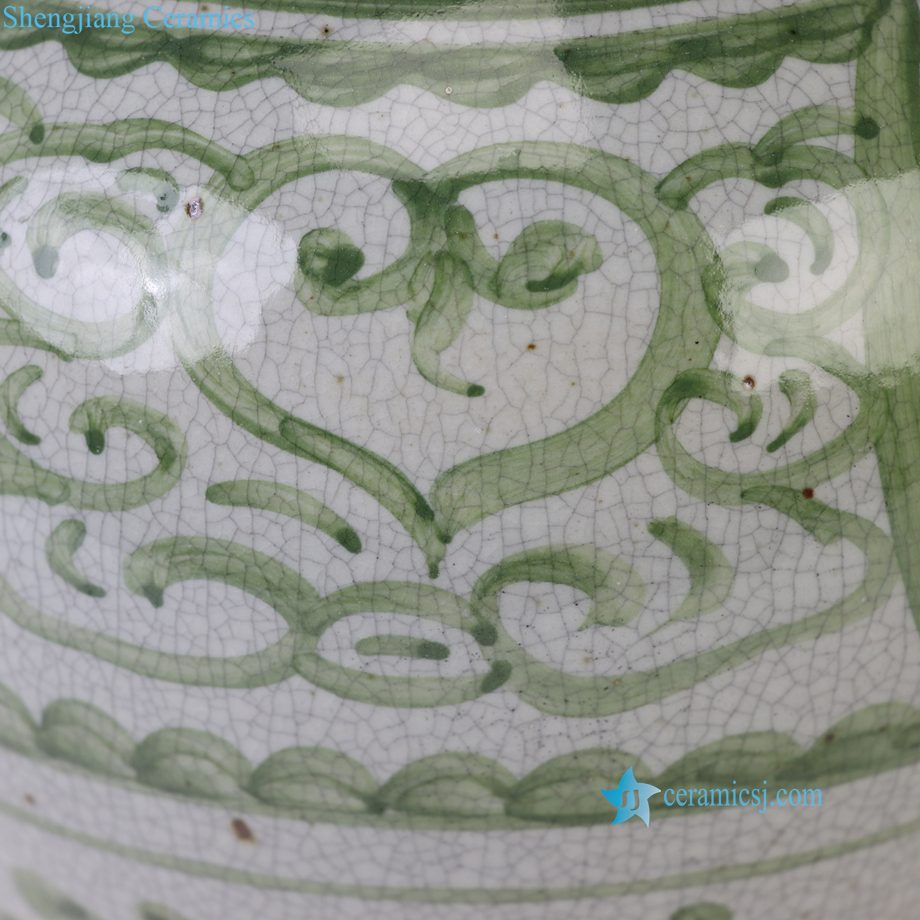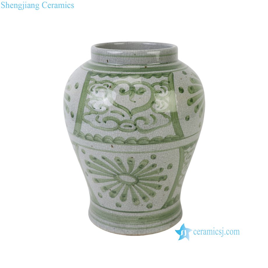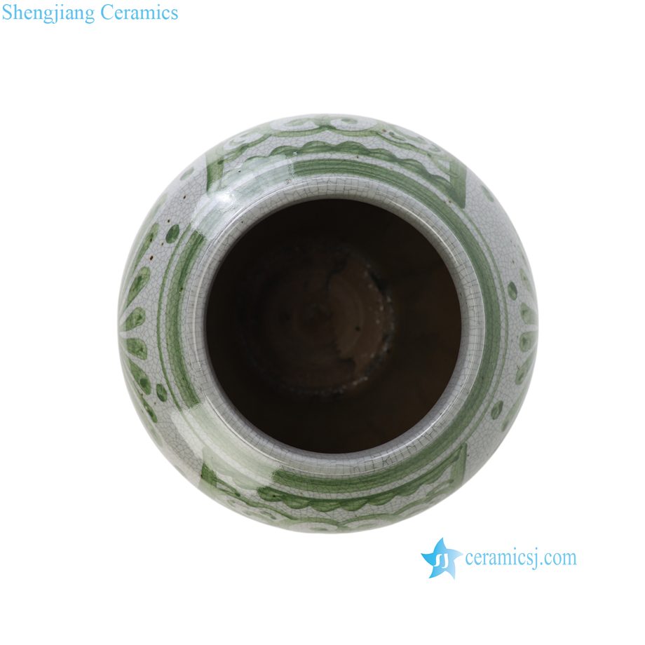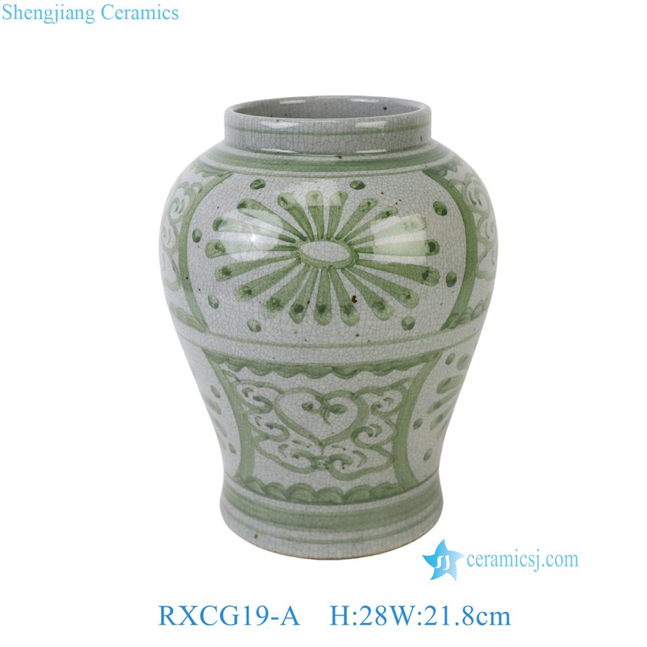 RXCG19-A Hand Painted Green White Folk Design Sunflower Pattern Porcelain Big Mouth Urn Vase for Living Room Hotel Villa