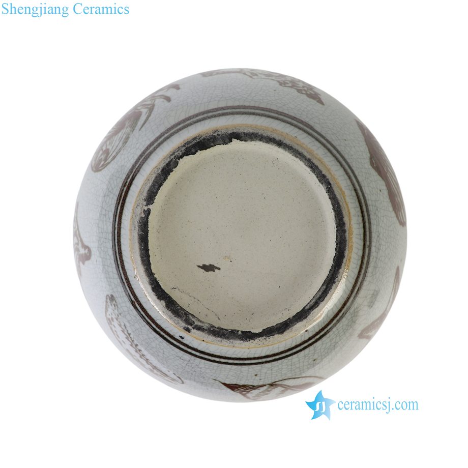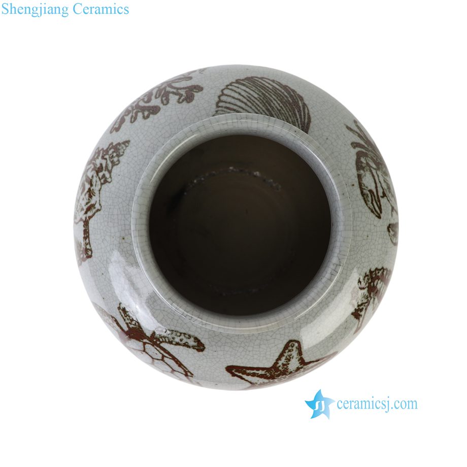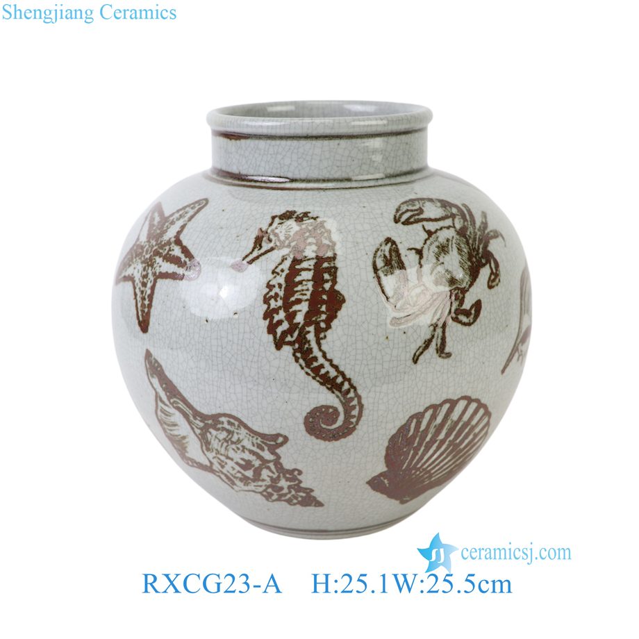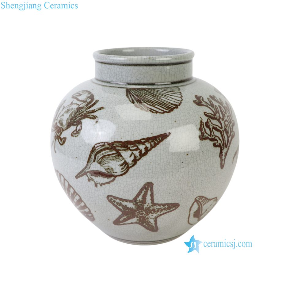 RXCG23-A Hand Painted Brown White Sea Animals Pattern Porcelain Big Mouth Urn Vase for Living Room Hotel Villa
