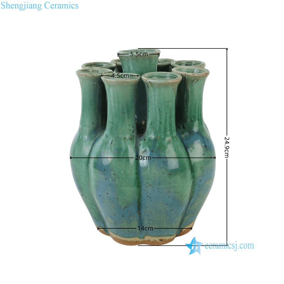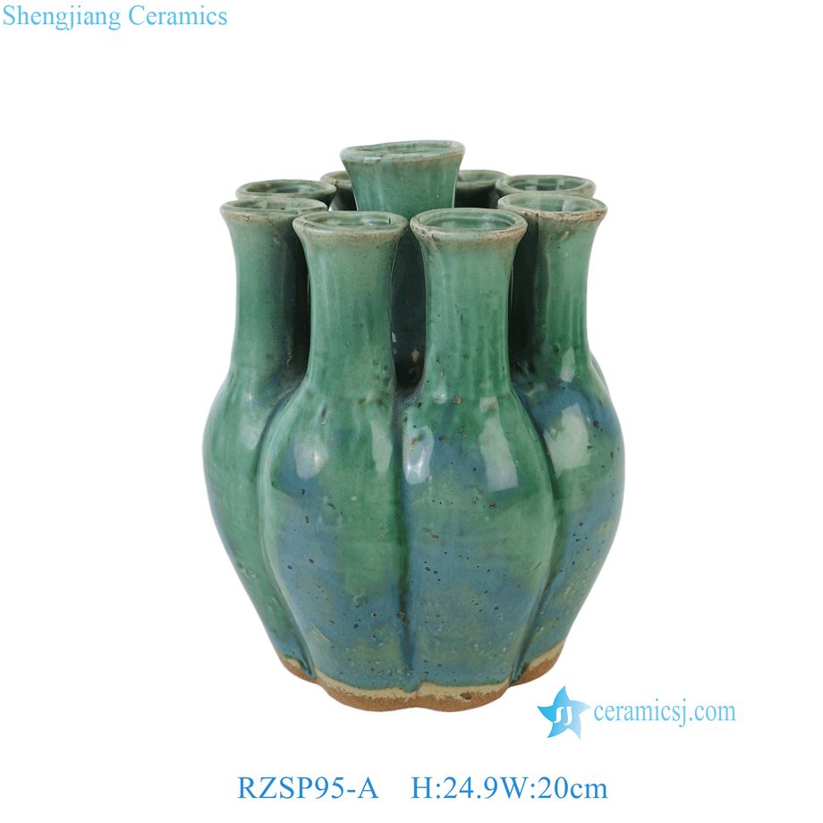 RZSP95-A Speckled Green Glazed Multi-necked Ceramic Vase Tulip Vase