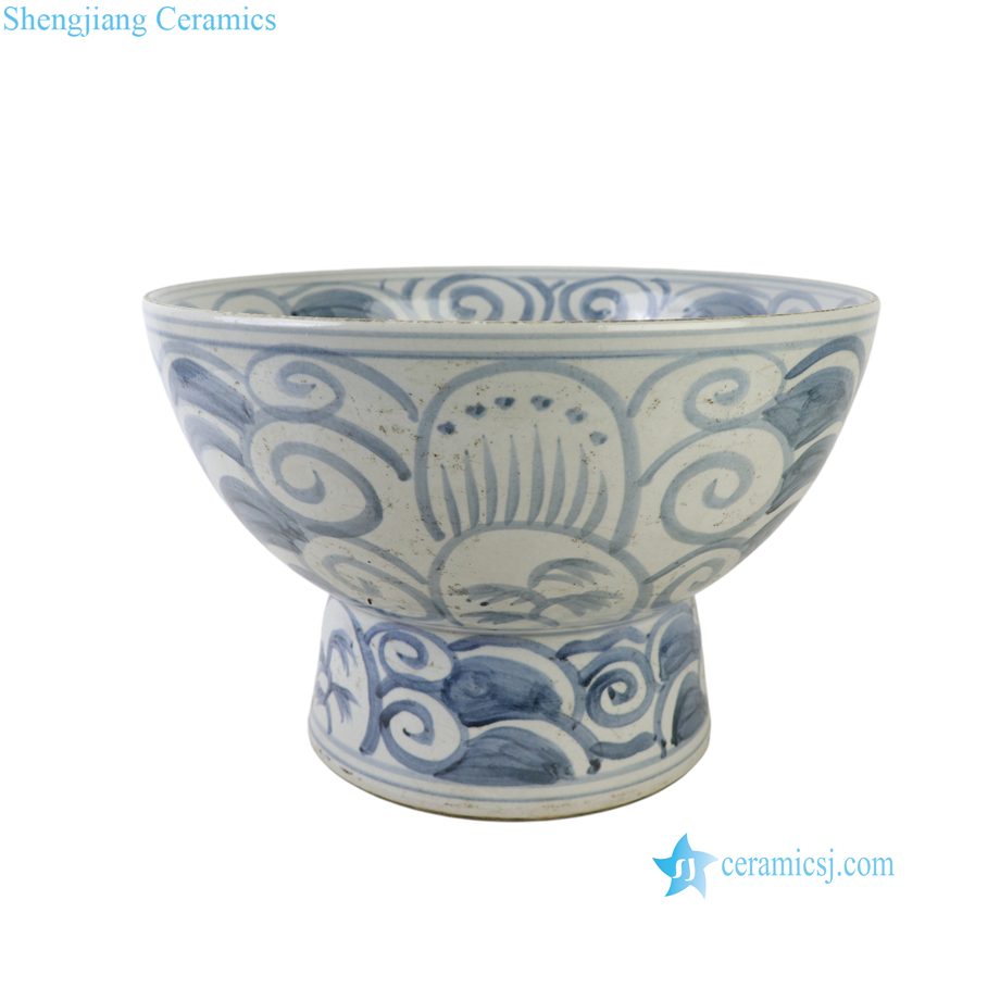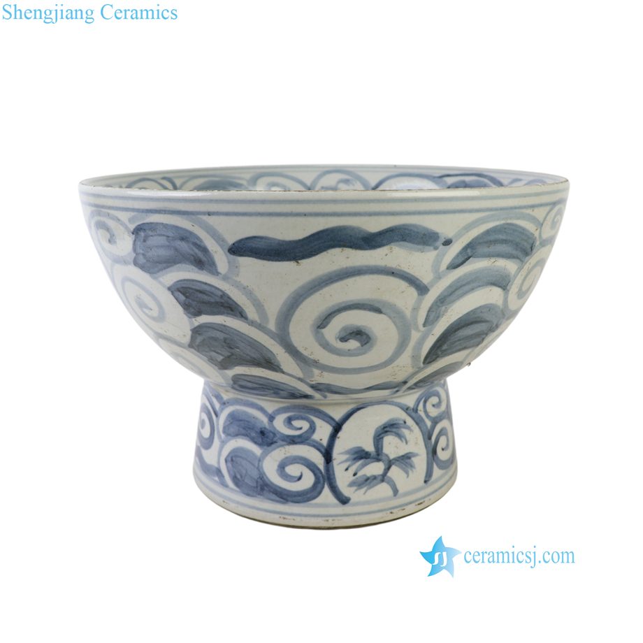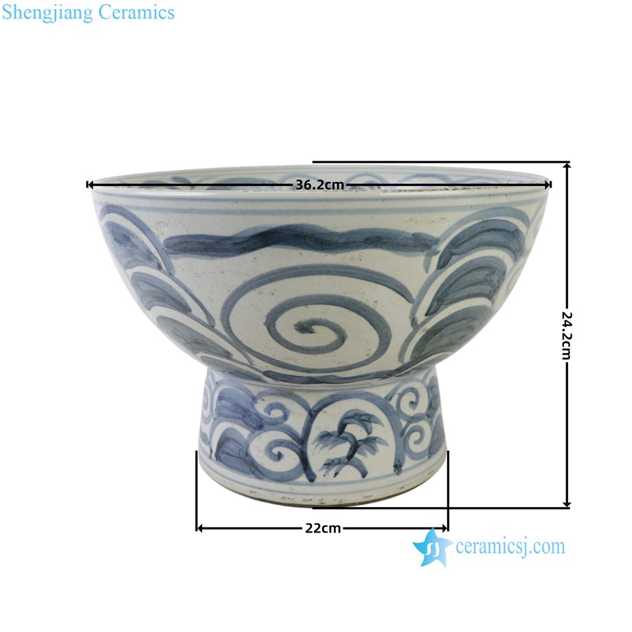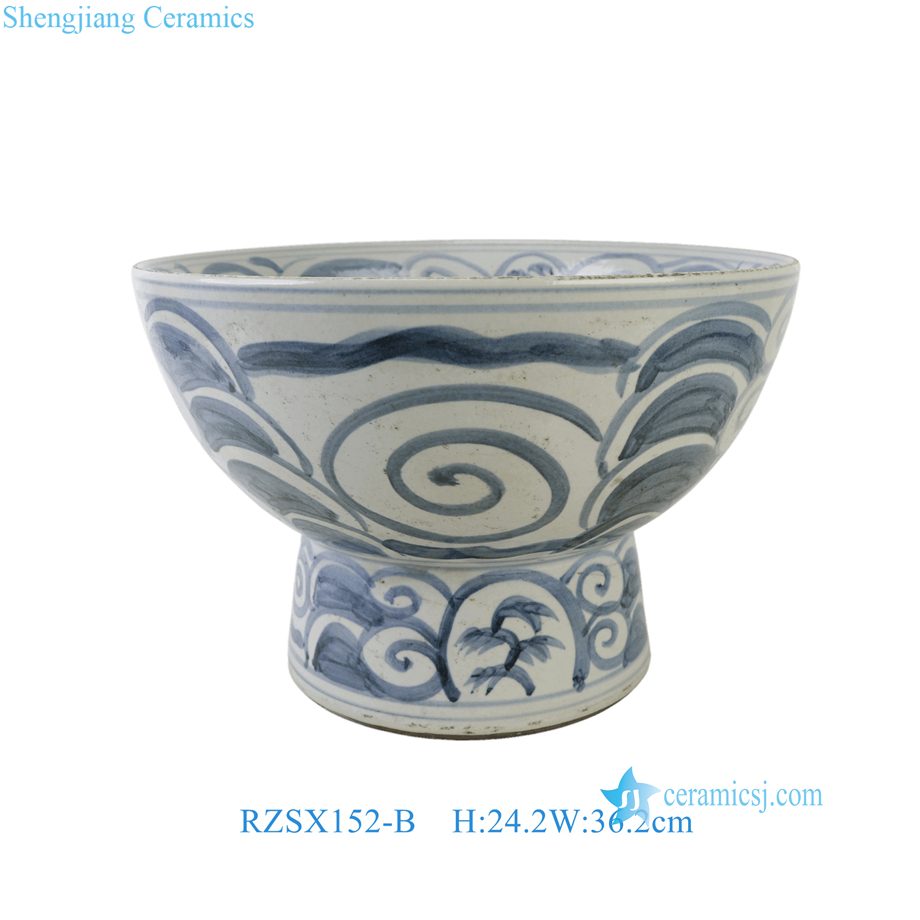 RZSX152-B Handpainted Floral Pattern Blue and White Ceramic Planter High foot stand Pot