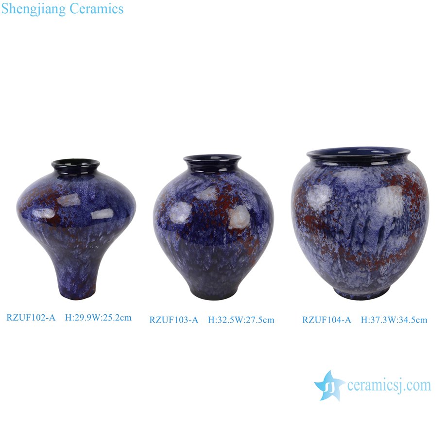 RZUF102-A-RZUF103-A-RZUF104-A Blue and Red Reactive Glaze Ceramic Art Pottery Flower Vase