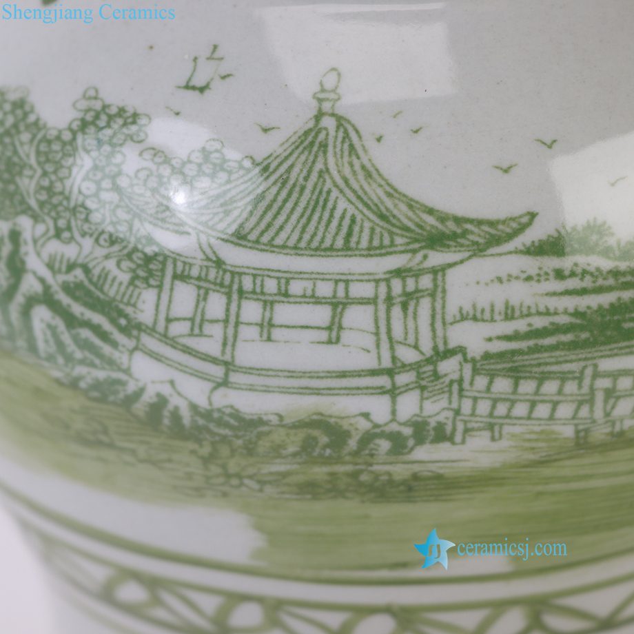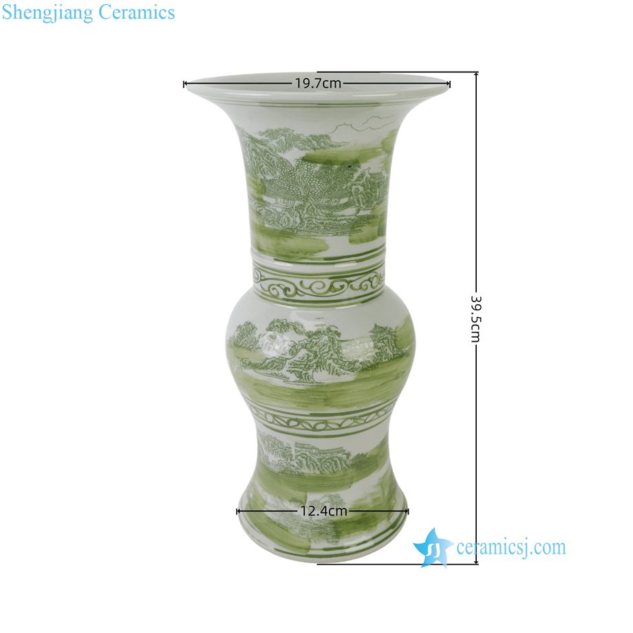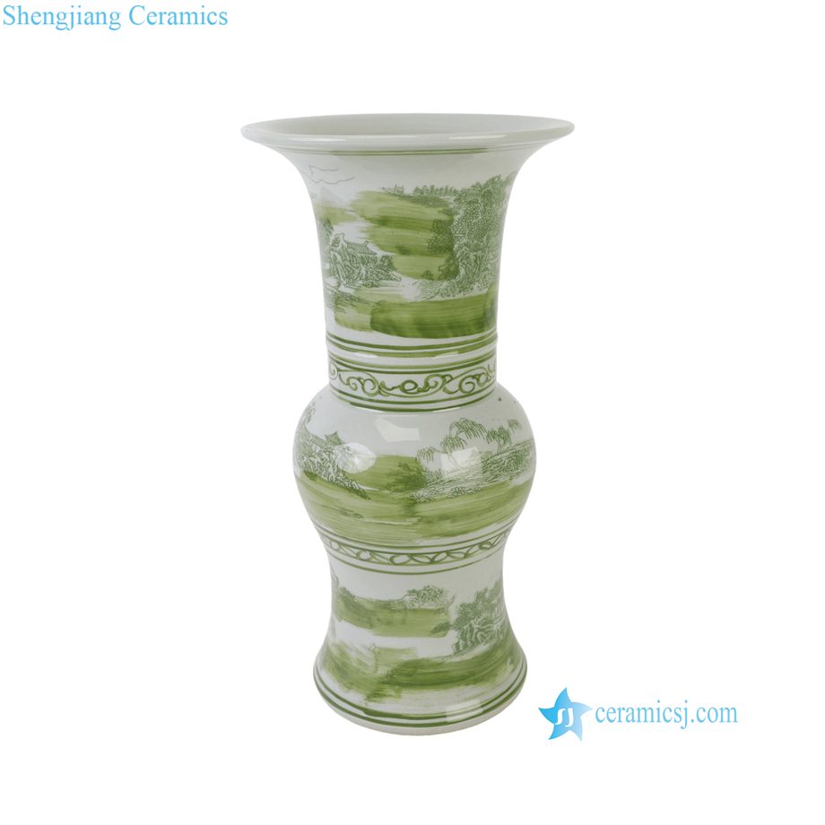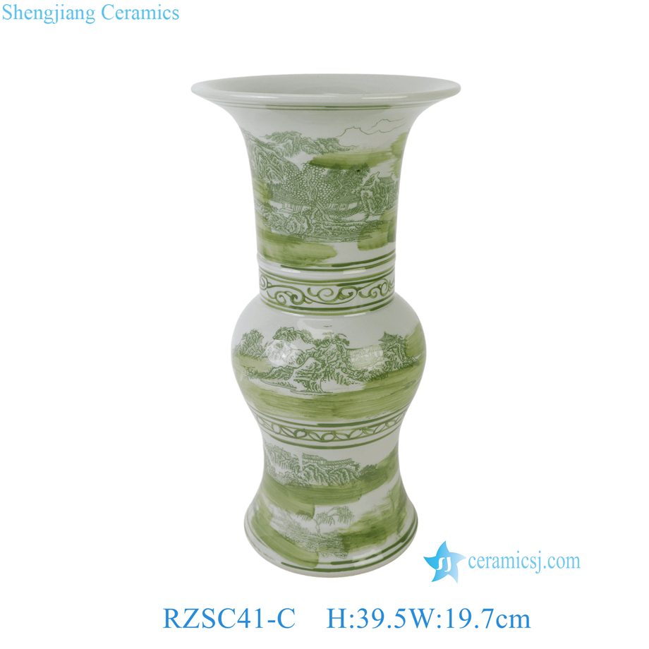 RZSC41-C Jingdezhen Green and White Chinese Porcelain Gu Vase with Landscape Painting