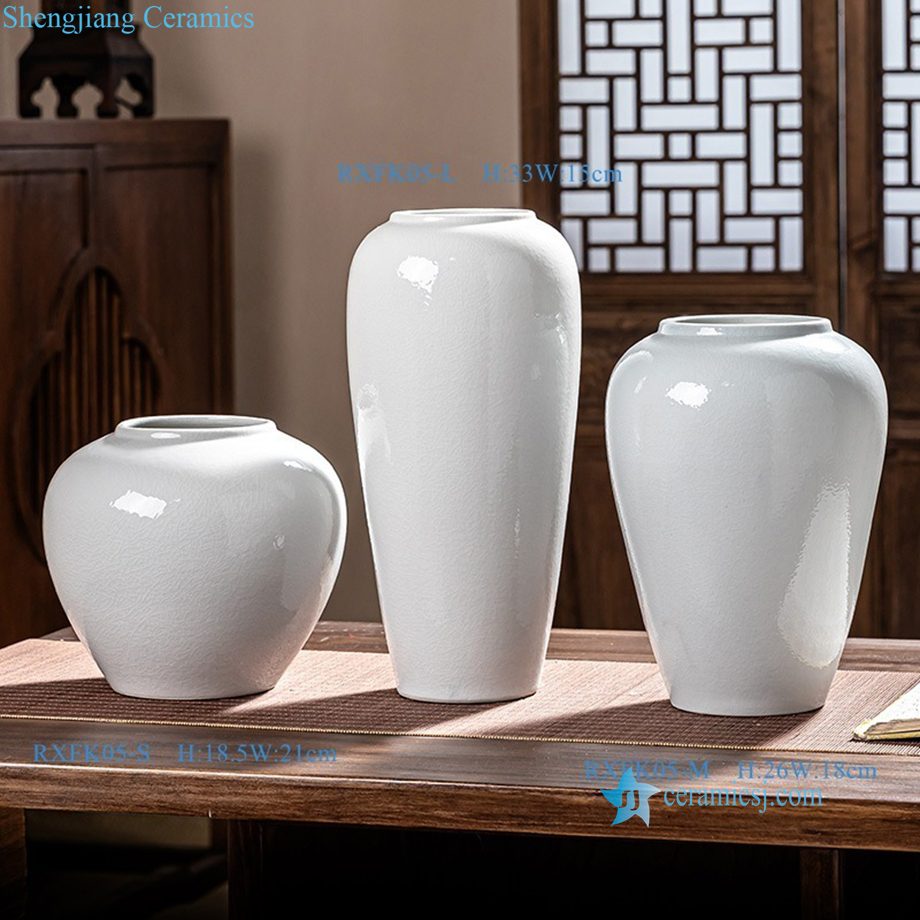 RXFK05-LMS Jingdezhen Set of 3 White Crackle Glaze Porcelain Vases