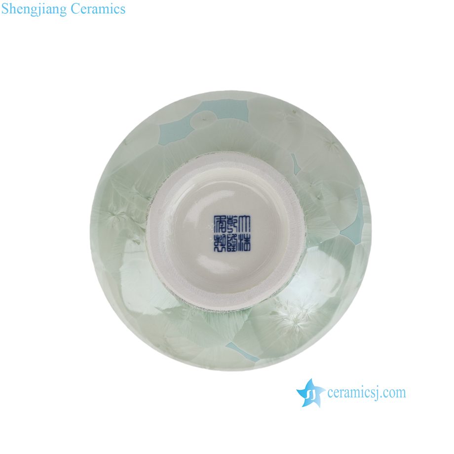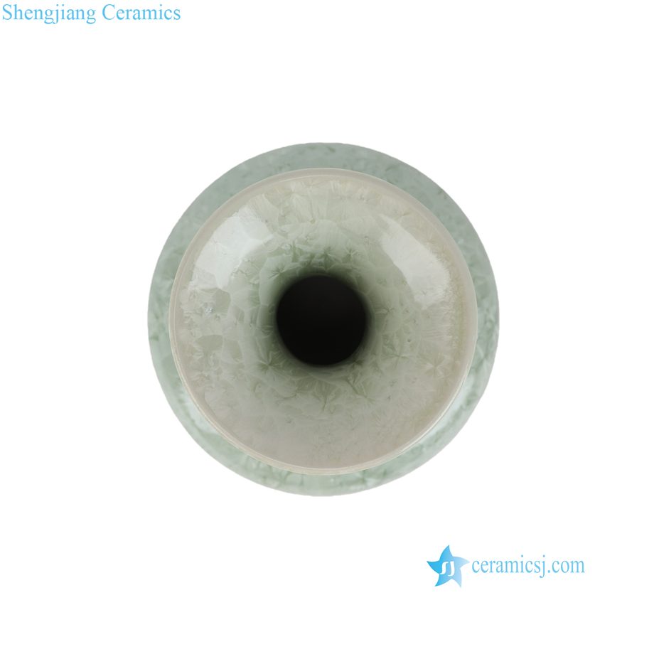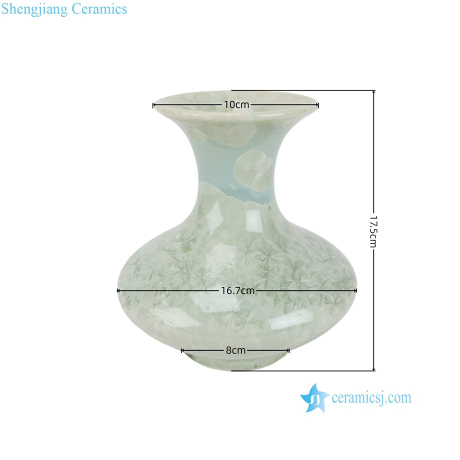 RYYH10-A Jingdezhen Celadon Porcelain Flattened Bulbous Vase with 3D Crystal Flower Glaze