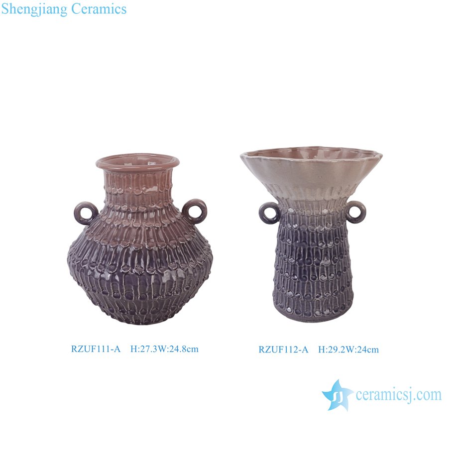 RZUF111-A-RZUF112-A Modern Nordic Style Purple Reactive Color Ceramic Flower Vase Decoration