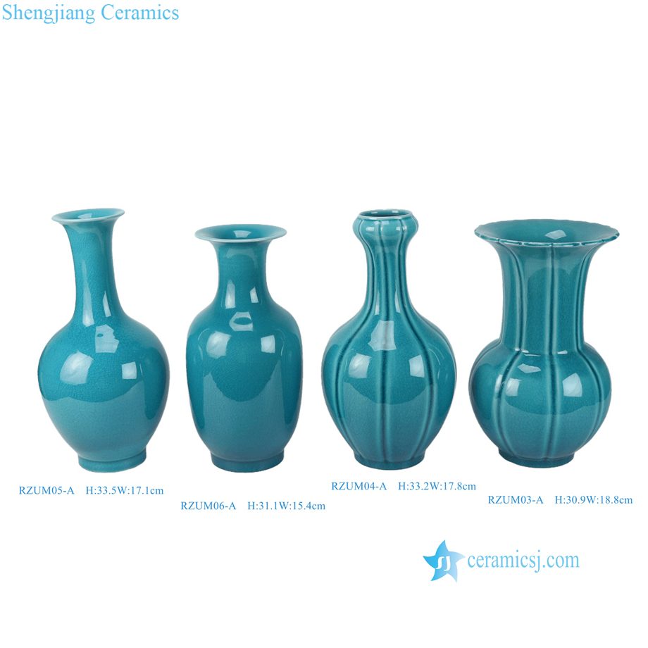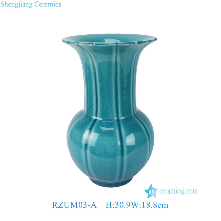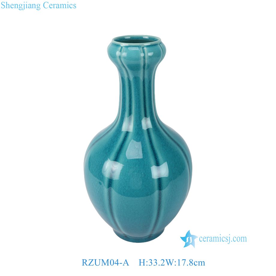 RZUM03-A-04-A-05-A-06-A Peacock Feather Green Melon-ribbed Melon-Form Ceramic Tabletop Flower Vase